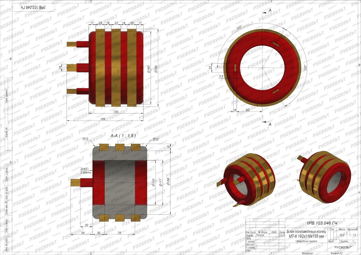 Блок контактных колец МТ6 192x110x135 (Россия) тип1 - чертеж 1РВ.103.046 ГЧ