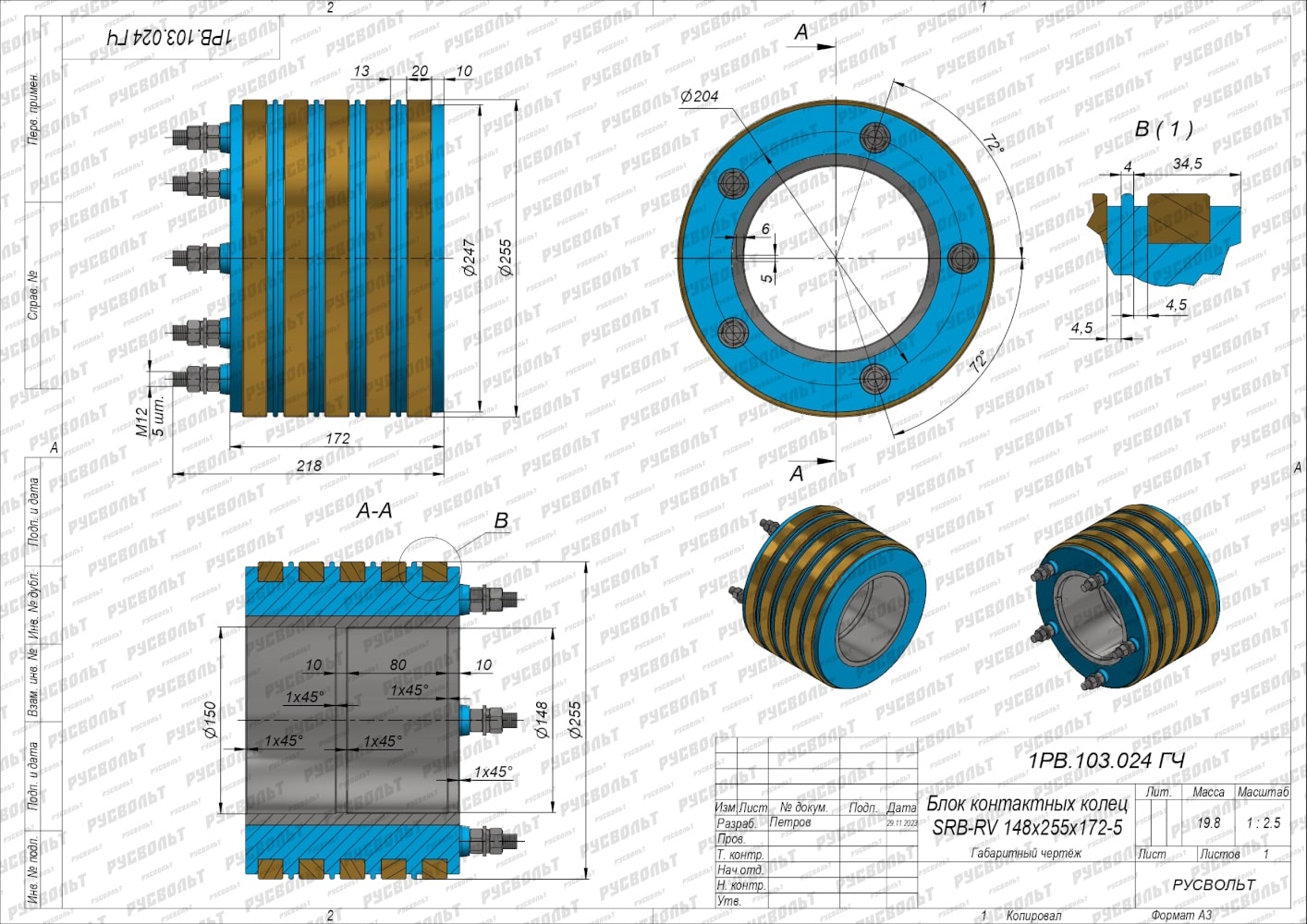 Блок контактных колец SRB-RV 148х255х172-5 входит в состав узла токосъема электродвигателей который состоит из щеткодержателей, бракета и меднографитовых электрощеток. Данные блоки предназначены для подачи электроэнергии на вращающийся вал электродвигателя. Блоки колец SRB-RV 148х255х172-5 изготавливаются чаще всего из меди или латуни (контактные кольца), а так же формовочного миканита и стеклоткани.
