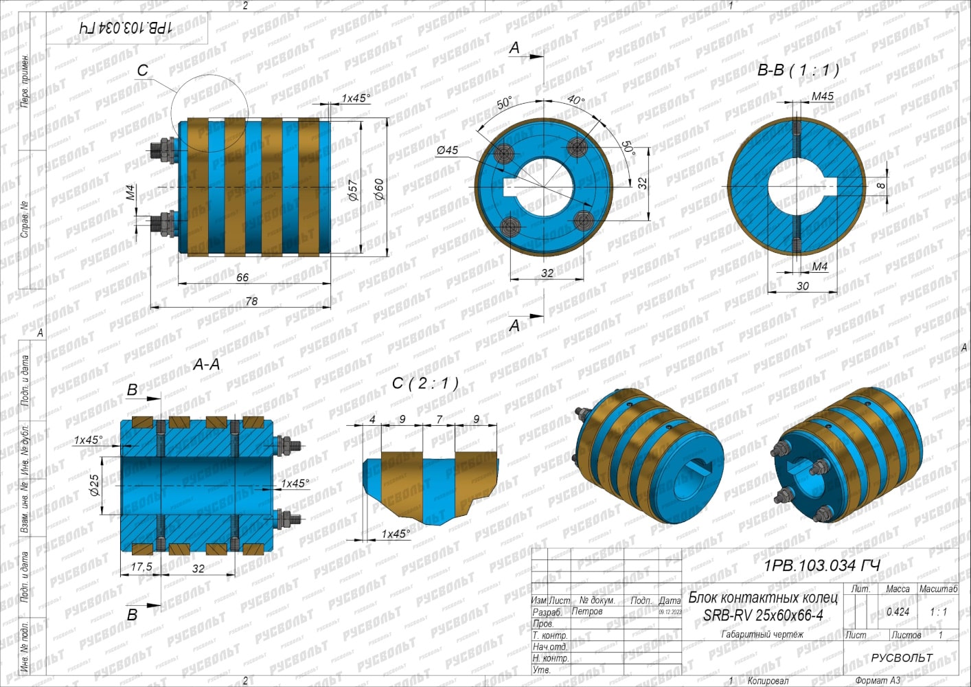 Блок контактных колец SRB-RV 25х60х66-4