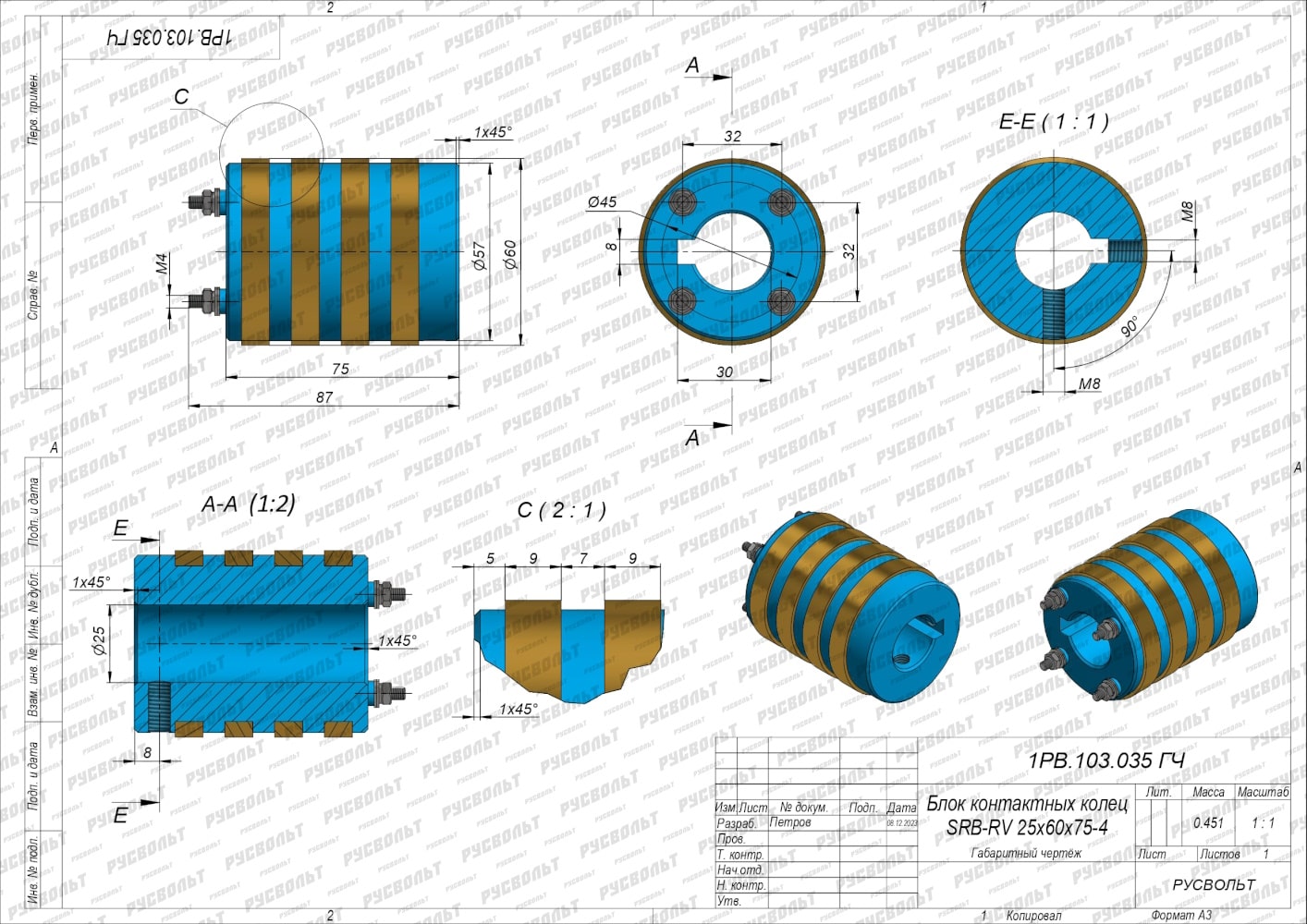 Блок контактных колец SRB-RV 25х60х75-4 входит в состав узла токосъема электродвигателей который состоит из щеткодержателей, бракета и меднографитовых электрощеток. Данные блоки предназначены для подачи электроэнергии на вращающийся вал электродвигателя. Блоки колец SRB-RV 25х60х75-4 изготавливаются чаще всего из меди или латуни (контактные кольца), а так же формовочного миканита и стеклоткани.