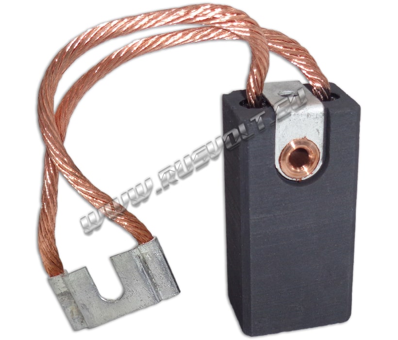 Электрощетки электрографитовые марки ЭГ14 для электрических двигателей либо генераторов - это расходник щеткодержателя (токосъемного устройства) из токопроводящего материала, который установлен на траверсе в узле токосъема на контактных кольцах для создания контакта с вращающимися элементами электродвигателя, а именно с блоком контактных колец. Данные щетки ЭГ-14 для электродвигателей производят без токоведущих проводов либо с ними. Используется провод марки ПЩ — нормальной гибкости, неизолированный. Измеряется длина токоведущего провода от центра отверстия под болт в наконечнике щетки, либо от окончания провода, если наконечник отсутствует, и до верхней части либо накладки электрощетки. Так же они могут использоваться в импортных щеткодержателях.