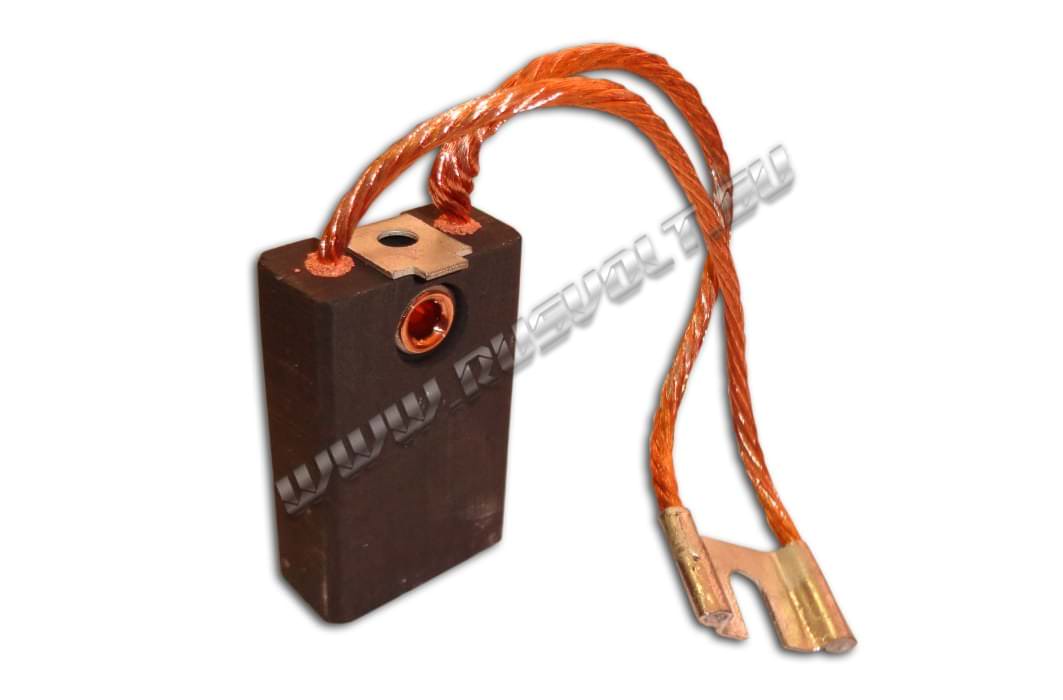 Электрощетки электрографитовые марки ЭГ14 16x32x50 для электрических двигателей либо генераторов - это расходник щеткодержателя (токосъемного устройства) из токопроводящего материала, который установлен на траверсе в узле токосъема на контактных кольцах для создания контакта с вращающимися элементами электродвигателя, а именно с блоком контактных колец. Электрографитные щетки ЭГ-14 применяют в электрических двигателях общепромышленного назначения или в тяговых, вспомогательных электродвигателях железнодорожного и городского транспорта. Они отличаются высокими показателями твердости и прочности. Данные щетки ЭГ14 16*32*50 для электродвигателей производят без токоведущих проводов либо с ними. Используется провод марки ПЩ — нормальной гибкости, неизолированный. Измеряется длина токоведущего провода от центра отверстия под болт в наконечнике щетки, либо от окончания провода, если наконечник отсутствует, и до верхней части либо накладки электрощетки. Так же они могут использоваться в импортных щеткодержателях.