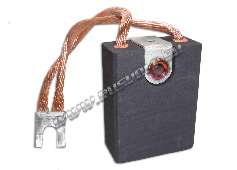 Электрощетки электрографитовые марки ЭГ14 25x50x64 для электрических двигателей либо генераторов - это расходник щеткодержателя (токосъемного устройства) из токопроводящего материала, который установлен на траверсе в узле токосъема на контактных кольцах для создания контакта с вращающимися элементами электродвигателя, а именно с блоком контактных колец. Электрографитные щетки ЭГ-14 применяют в электрических двигателях общепромышленного назначения или в тяговых, вспомогательных электродвигателях железнодорожного и городского транспорта. Они отличаются высокими показателями твердости и прочности. Данные щетки ЭГ14 25*50*64 для электродвигателей производят без токоведущих проводов либо с ними. Используется провод марки ПЩ — нормальной гибкости, неизолированный. Измеряется длина токоведущего провода от центра отверстия под болт в наконечнике щетки, либо от окончания провода, если наконечник отсутствует, и до верхней части либо накладки электрощетки. Так же они могут использоваться в импортных щеткодержателях.
