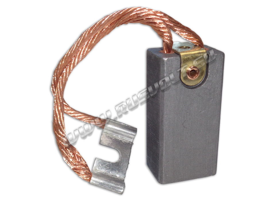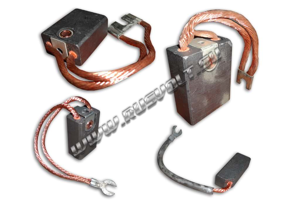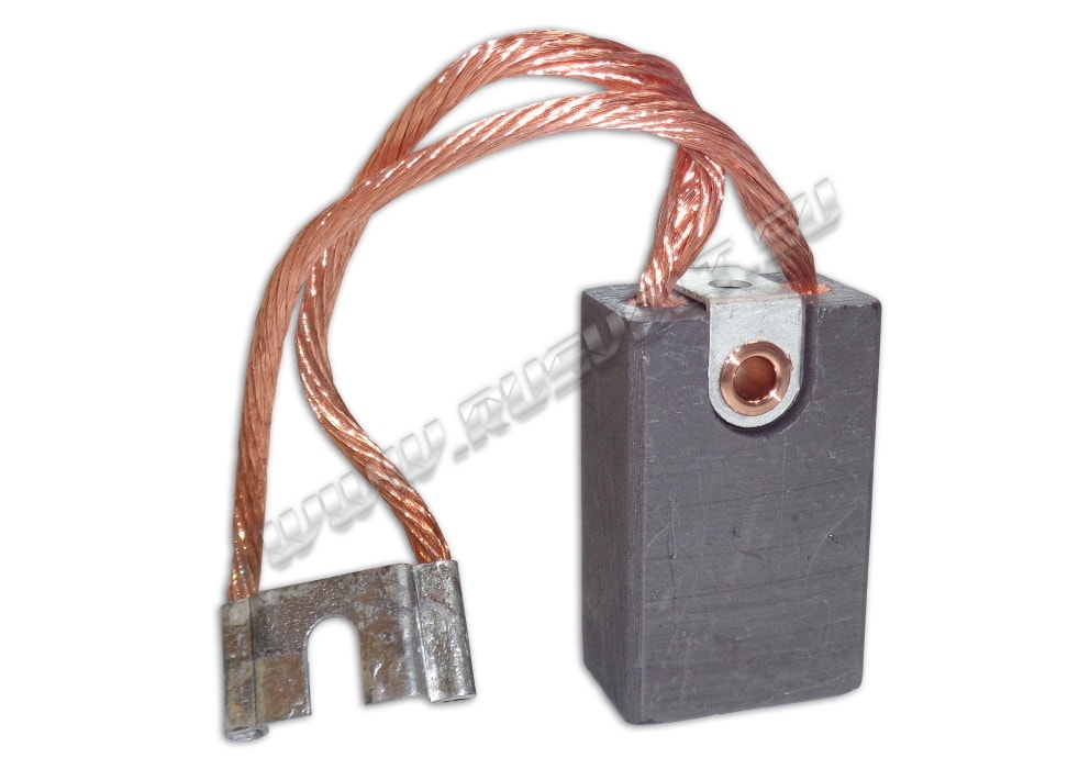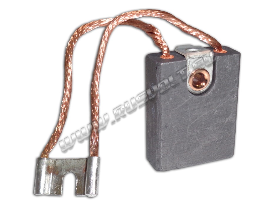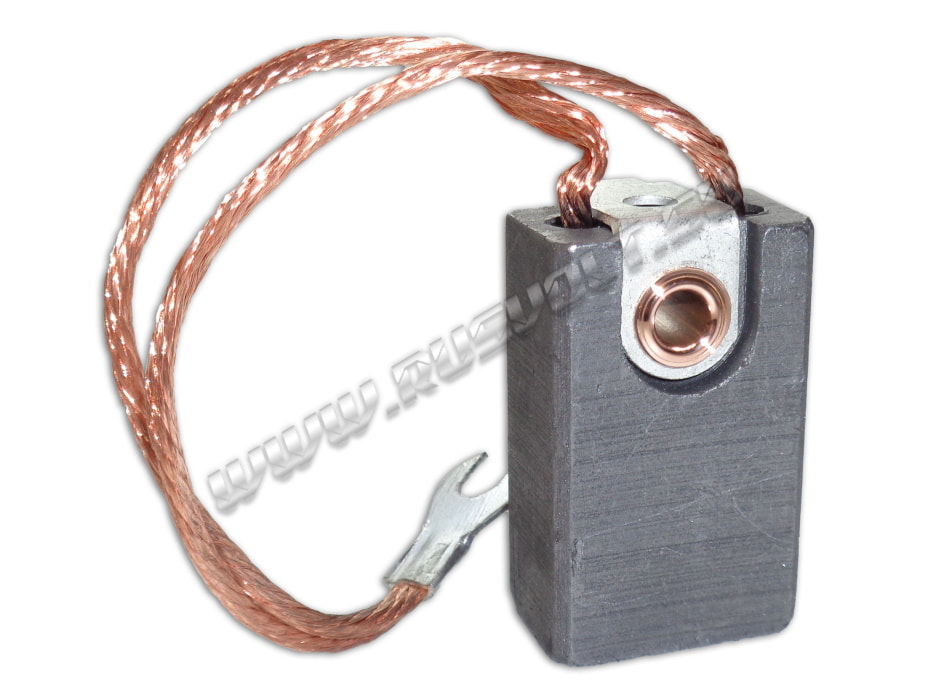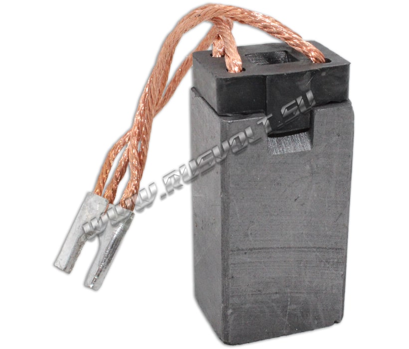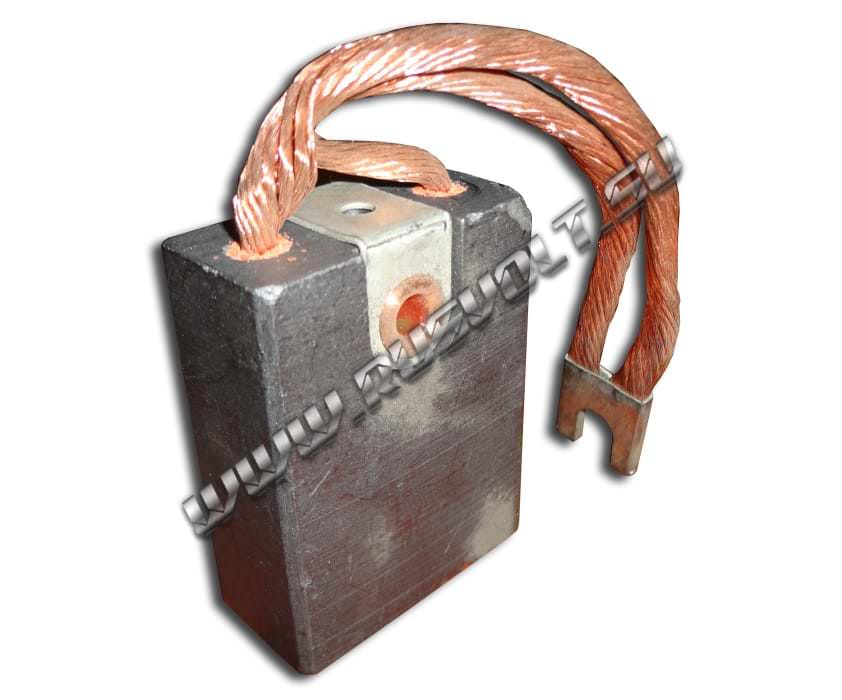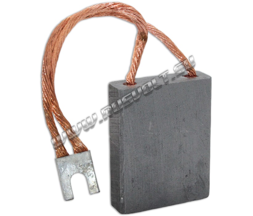 Электрощетки электрографитовые марки ЭГ4 для электрических двигателей либо генераторов - это расходник щеткодержателя (токосъемного устройства) из токопроводящего материала, который установлен на траверсе в узле токосъема на контактных кольцах для создания контакта с вращающимися элементами электродвигателя, а именно с блоком контактных колец. Данные щетки ЭГ-4 для электродвигателей производят без токоведущих проводов либо с ними. Используется провод марки ПЩ — нормальной гибкости, неизолированный. Измеряется длина токоведущего провода от центра отверстия под болт в наконечнике электрощетки либо от окончания провода, если наконечник отсутствует и до верхней части либо накладки электрощетки. Так же они могут использоваться в импортных щеткодержателях.