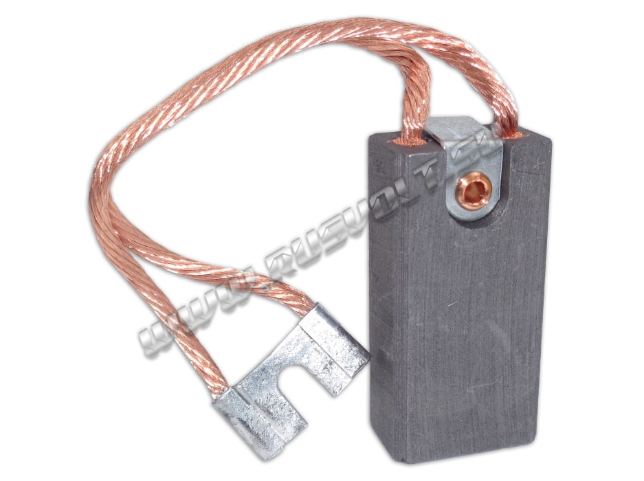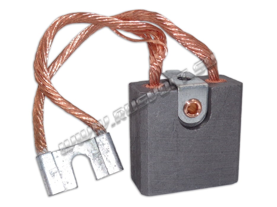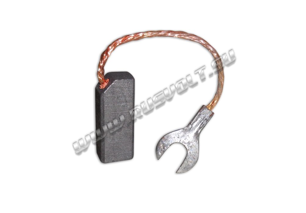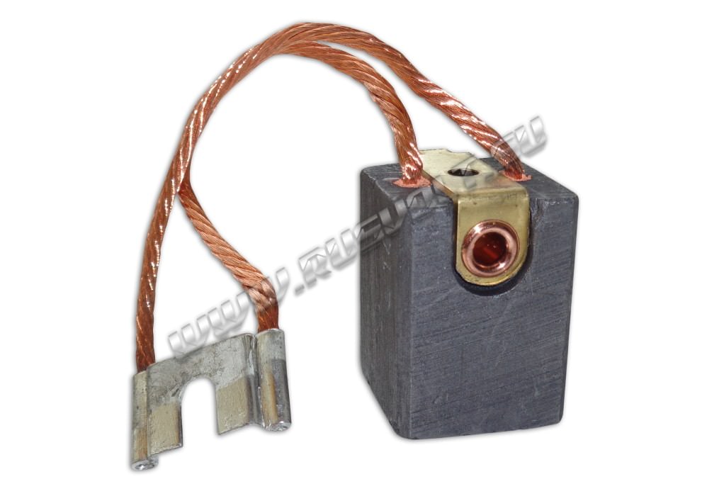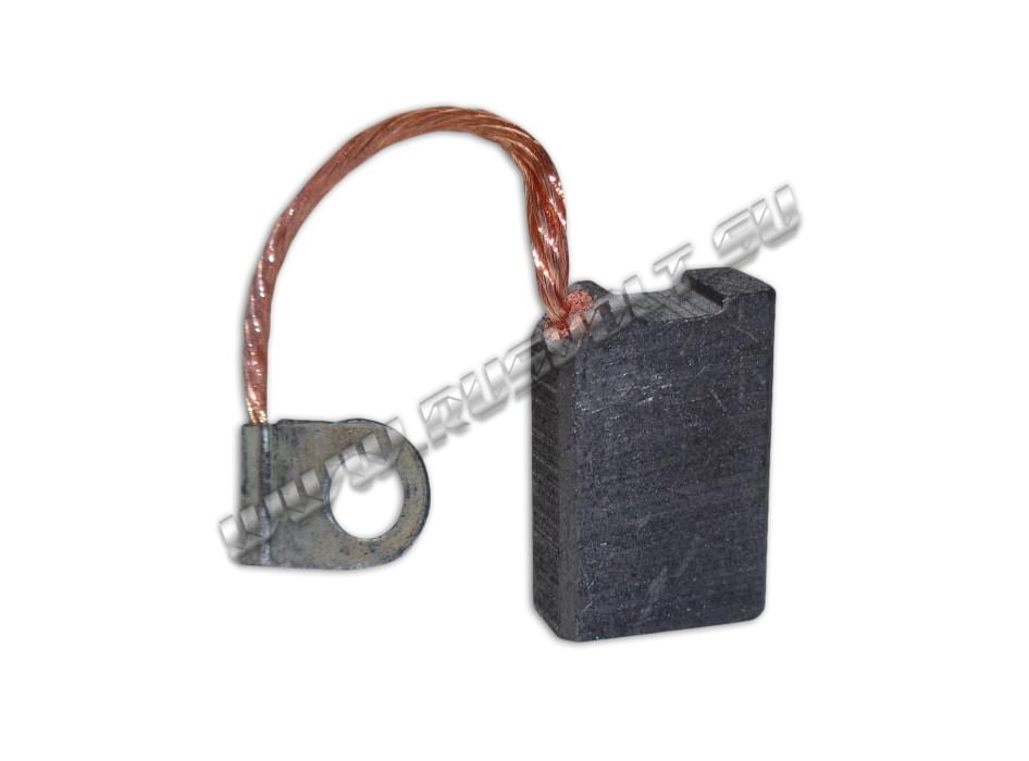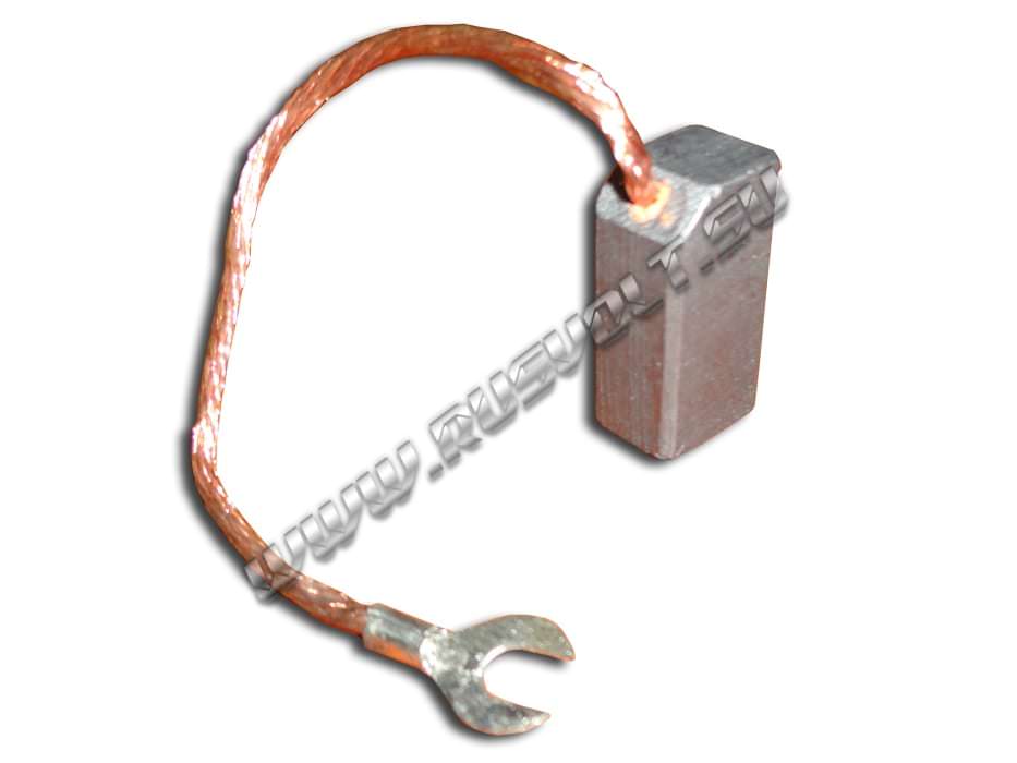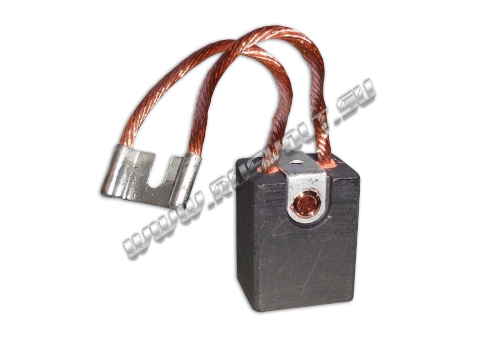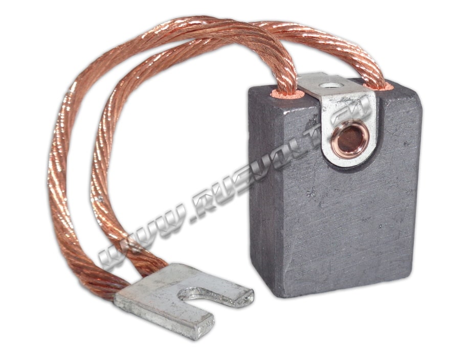 Электрощетки электрографитовые марки ЭГ4 для электрических двигателей либо генераторов - это расходник щеткодержателя (токосъемного устройства) из токопроводящего материала, который установлен на траверсе в узле токосъема на контактных кольцах для создания контакта с вращающимися элементами электродвигателя, а именно с блоком контактных колец. Данные щетки ЭГ-4 для электродвигателей производят без токоведущих проводов либо с ними. Используется провод марки ПЩ — нормальной гибкости, неизолированный. Измеряется длина токоведущего провода от центра отверстия под болт в наконечнике электрощетки либо от окончания провода, если наконечник отсутствует и до верхней части либо накладки электрощетки. Так же они могут использоваться в импортных щеткодержателях.