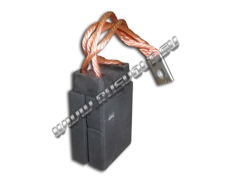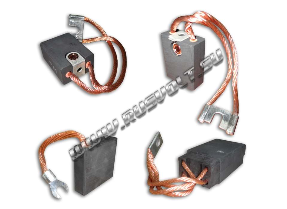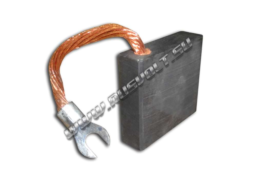 Электрощетки электрографитовые марки ЭГ-61 для электрических двигателей либо генераторов - это расходник щеткодержателя (токосъемного устройства) из токопроводящего материала, который установлен на траверсе в узле токосъема на контактных кольцах для создания контакта с вращающимися элементами электродвигателя, а именно с блоком контактных колец. Данные щетки ЭГ61 для электродвигателей производят без токоведущих проводов либо с ними. Используется провод марки ПЩ — нормальной гибкости, неизолированный. Измеряется длина токоведущего провода от центра отверстия под болт в наконечнике щетки, либо от окончания провода, если наконечник отсутствует, и до верхней части либо накладки электрощетки. Так же они могут использоваться в импортных щеткодержателях.