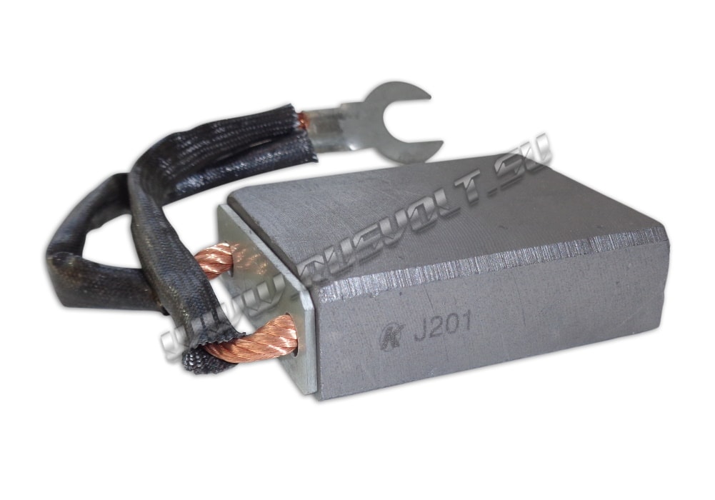Китайские электрощетки J201 (М1, М1А) 20х50 китайского производства применяются в щеткодержателях узлов токосъема на китайских крановых электродвигателях, а конкретно в узле токосъема HUA10 20х50. Щетки J201 (М1, М1А) существенно мягче МГСО (МГ, J164) и прослужат меньше, но коллектор электрического двигателя менее подвержен износу. Они комплектуются текстолитовыми накладками для смягчения давления на них рычагом щеткодержателя HUA10 20х50, а так же все их поводки защищены изоляцией.
