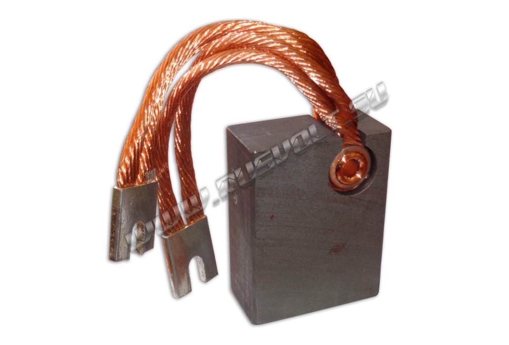 Электрощетки меднографитовые марки МГ4 для электрических двигателей либо генераторов - это расходник щеткодержателя (токосъемного устройства) из токопроводящего материала, который установлен на траверсе в узле токосъема на контактных кольцах для создания контакта с вращающимися элементами электродвигателя, а именно с блоком контактных колец. Данные щетки МГ4 для электродвигателей производят без токоведущих проводов либо с ними. Используется провод марки ПЩ — нормальной гибкости, неизолированный. Измеряется длина токоведущего провода от центра отверстия под болт в наконечнике либо от окончания провода, если наконечник отсутствует, и до верхней части электрической щетки. Так же они могут использоваться в импортных щеткодержателях.