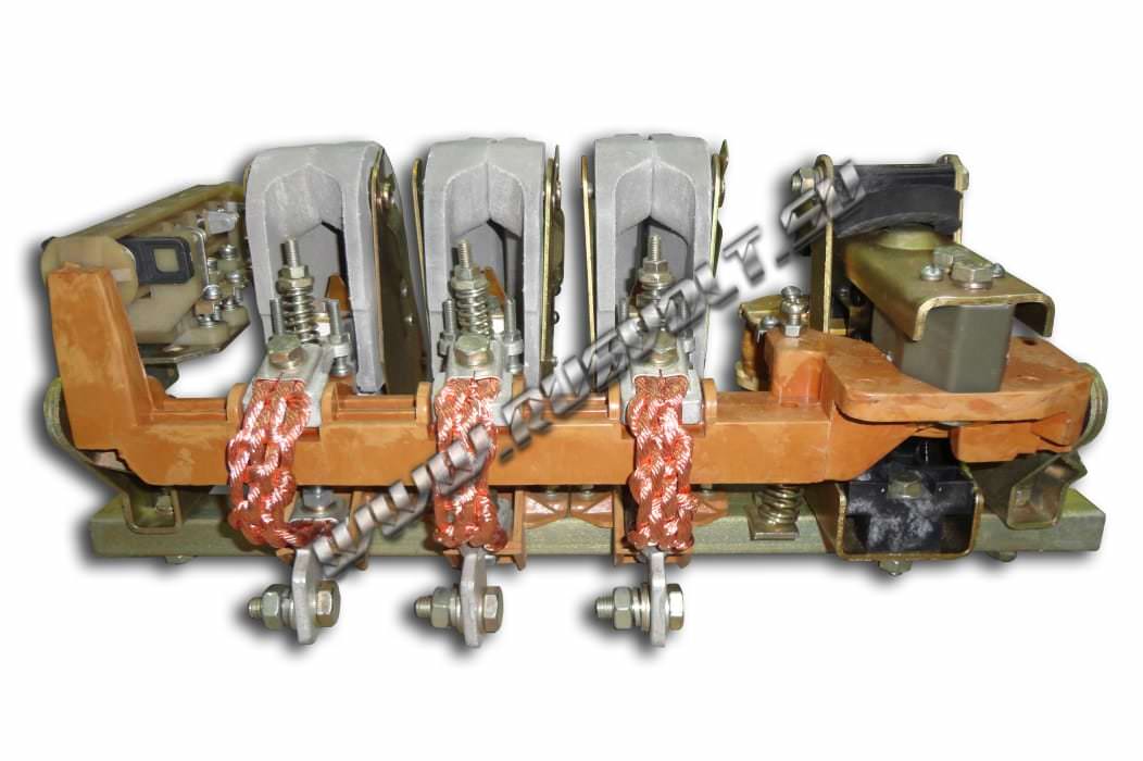 - Произвести чистку и регулировку плотности нажатия всех главных контактов установленных в контакторе КТ6033Б. Убедиться в их свободном ходе и если необходимо устранить притирания;