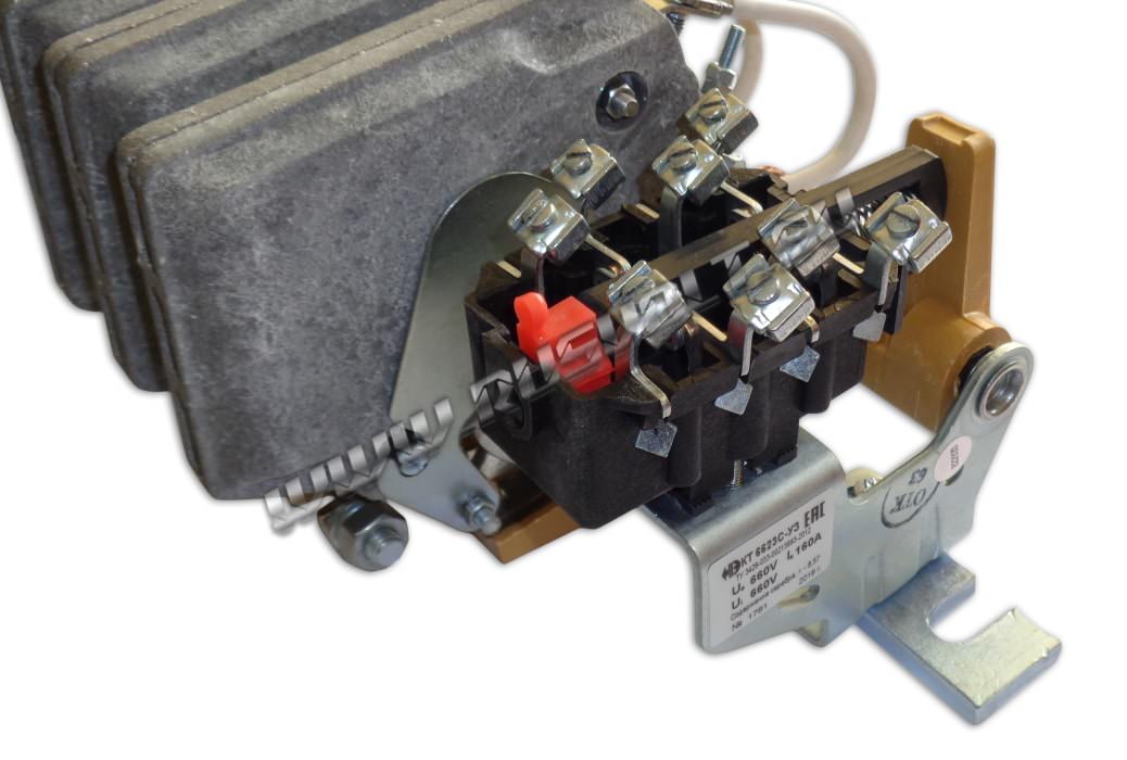 - Произвести чистку и регулировку плотности нажатия всех главных контактов установленных в контакторе КТ6623Б. Убедиться в их свободном ходе и если необходимо устранить притирания;