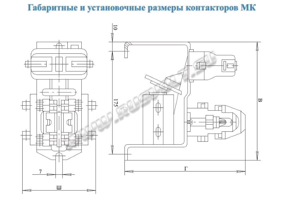 Габаритные размеры и электрическая схема контакторов МК