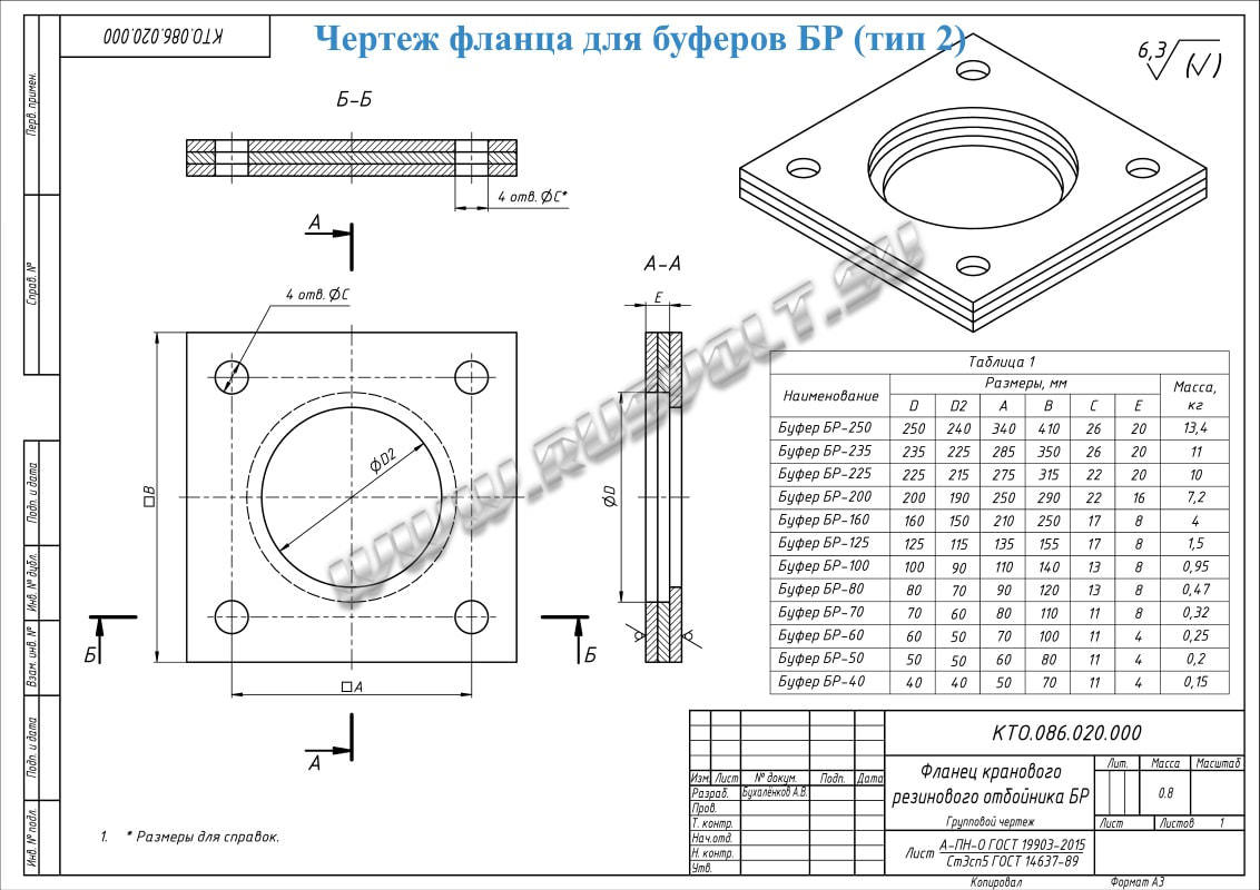 Также мы имеем возможность поставить фланцы к любым типоразмерам резиновых буферов БР. Фланец необходим для крепления резинового буфера непосредственно к тупиковому упору, концевой балке, грузовой тележке или концевому упору. Другими словами это крепление буфера марки БР.