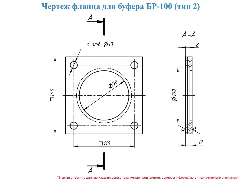 Фланец буфера БР-100 необходим в качестве крепления буфера непосредственно к концевой балке, ходовой или грузовой тележке козлового и мостового кранов. Он предназначен для эксплуатации при температуре от плюс 40 до минус 40 градусов по цельсию, как на открытом воздухе так и в помещении. Фланец буфера кранового БР100 изготавливается в соответствии с ГОСТ из листа низколегированного металла методом металлообработки и покрывается краской (грунтом), которая устойчива к негативным воздействиям климата.