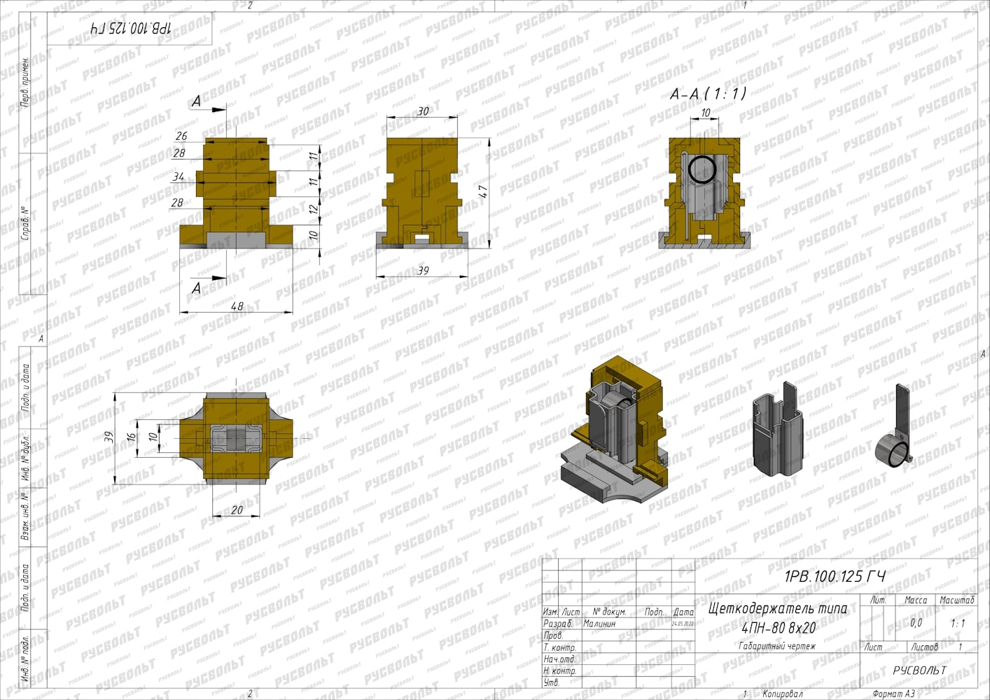 Щеткодержатель типа 4ПБ-80 8х20 (4ПБ-100, 4ПН-80, 4ПН-100) - чертеж 1РВ.100.125 ГЧ
