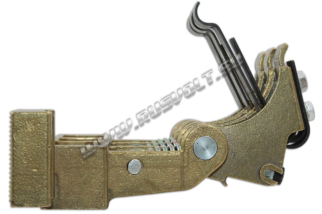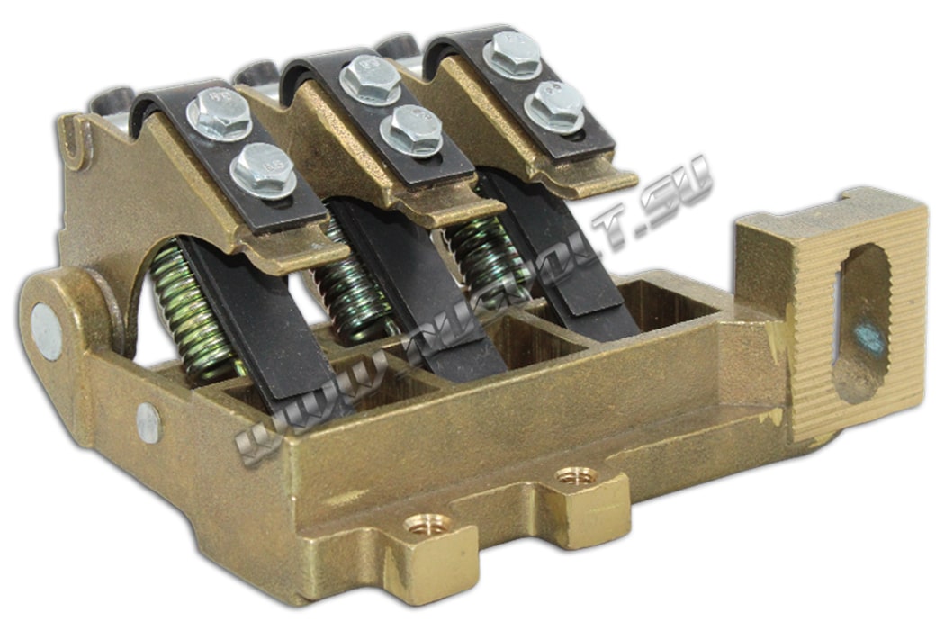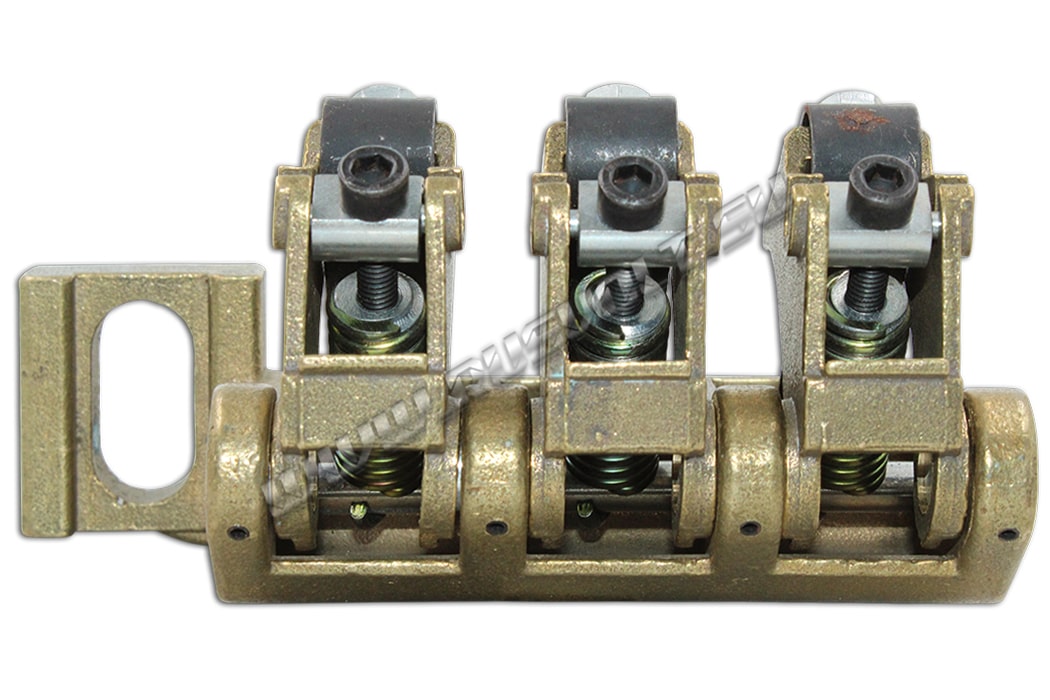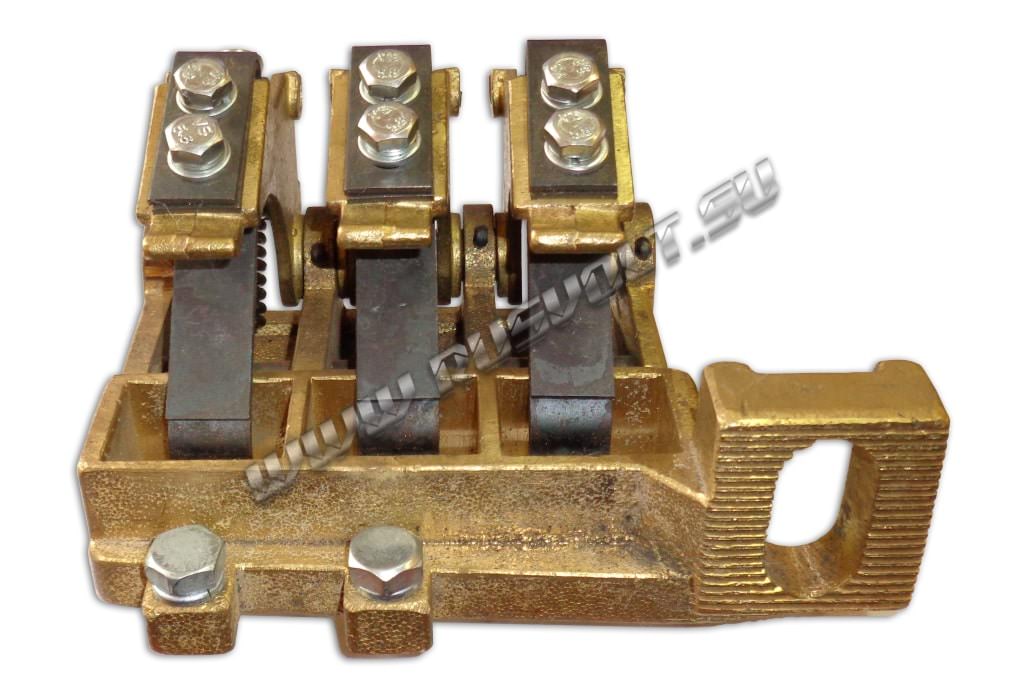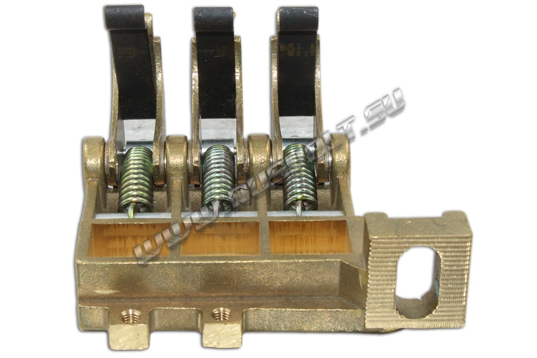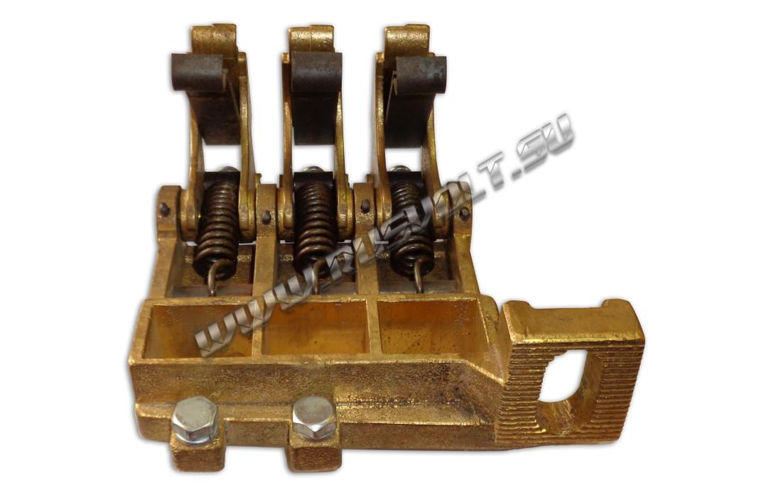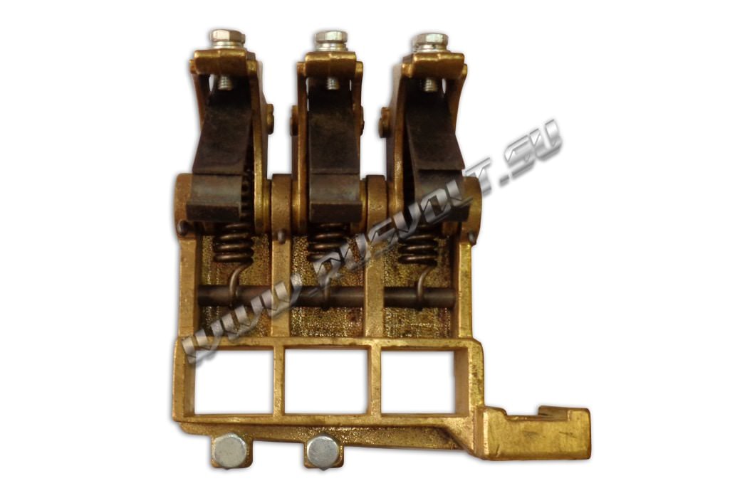 Щёткодержатель ДК 722 3/25х32 (левый) состоит из трех обойм и нажимных устройств, обеспечивающих прилегание щетки к коллектору с необходимым усилием. Он сделан со специальными цилиндрическими витыми пружинами растяжения, радиальный, с разъемами для трех щеток. Давление на графитовую щетку передаётся с помощью рычага и должно быть отрегулировано так, чтобы был плотный и надежный контакт между щеткой и коллектором. Сам щеткодержатель крепится на бракет (траверсу). Изготавливается под давлением из латуни марки ЛС-59 с помощью фрезерной обработки путем протяжки, сверления и запиловки.