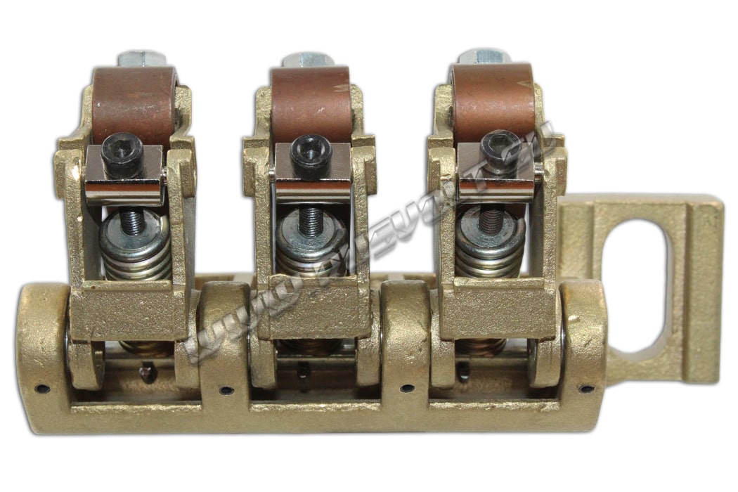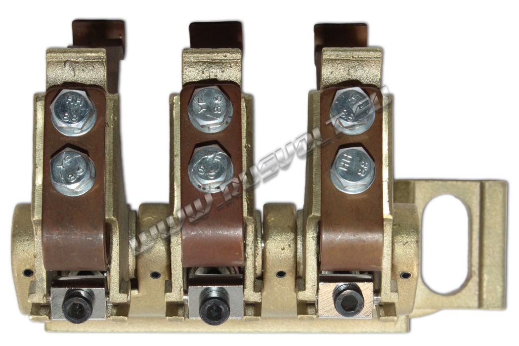 Щёткодержатель ДК 724 3/25х32 (правый) состоит из трех обойм и нажимных устройств, обеспечивающих прилегание щетки к коллектору с необходимым усилием. Он сделан со специальными цилиндрическими витыми пружинами растяжения, радиальный, с разъемами для трех щеток. Давление на графитовую щетку передаётся с помощью рычага и должно быть отрегулировано так, чтобы был плотный и надежный контакт между щеткой и коллектором. Сам щеткодержатель крепится на бракет (траверсу). Изготавливается под давлением из латуни марки ЛС-59 с помощью фрезерной обработки путем протяжки, сверления и запиловки.