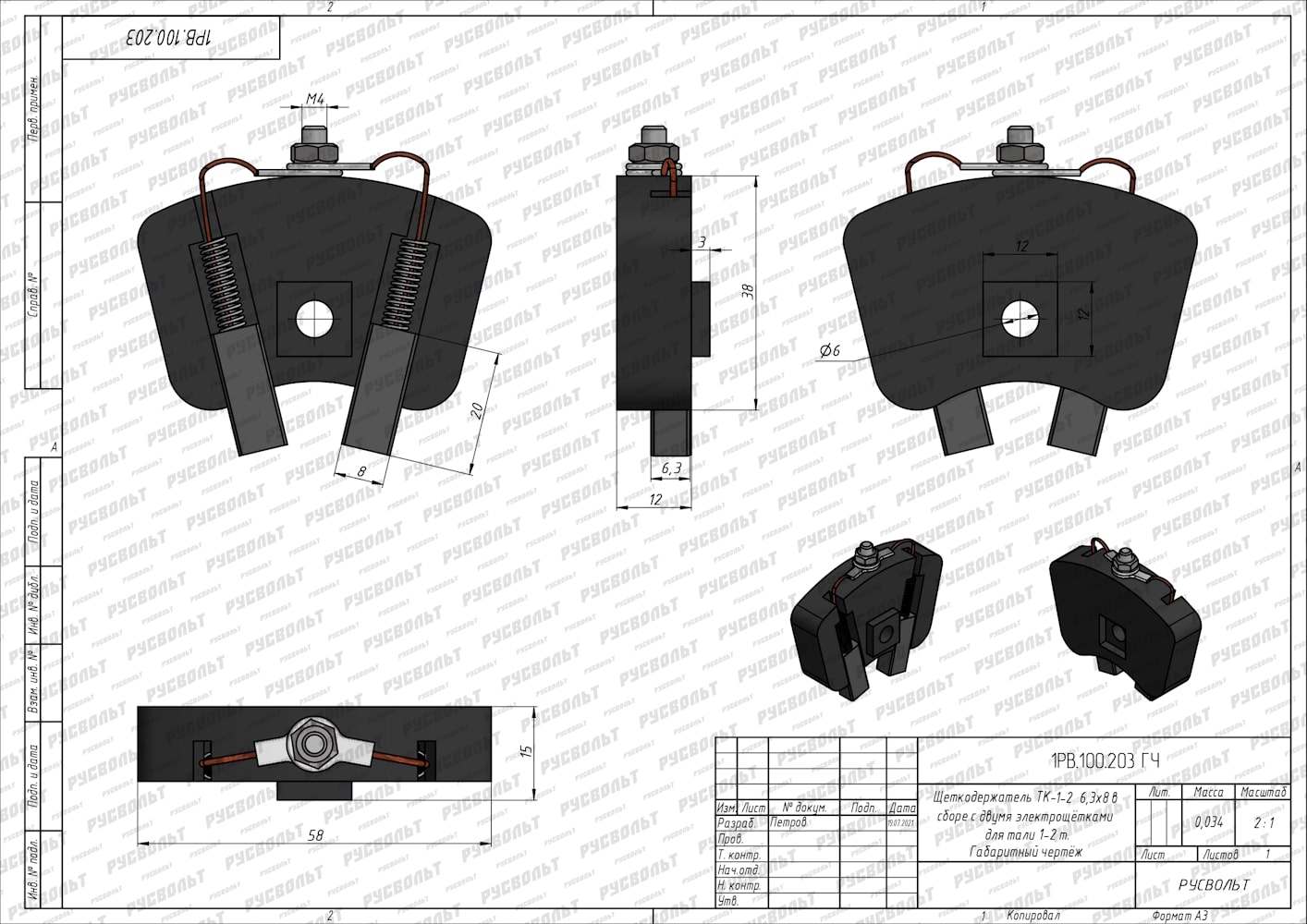 Щеткодержатель ТК 1-2 6,3*8 для электрической тали (тельфера) 1-2 тонн - чертеж 1РВ.100.203 ГЧ