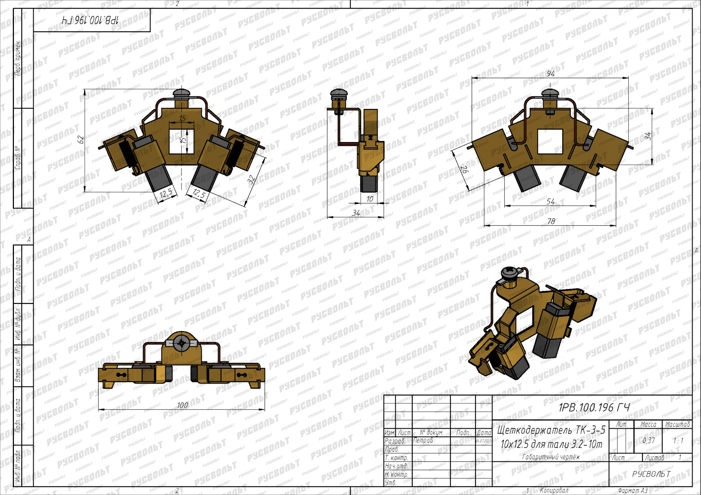 Щеткодержатель ТК-3-5 10х12,5 для электрической тали (тельфера) 3,2-12,5 тонн - чертеж 1РВ.100.196 ГЧ
