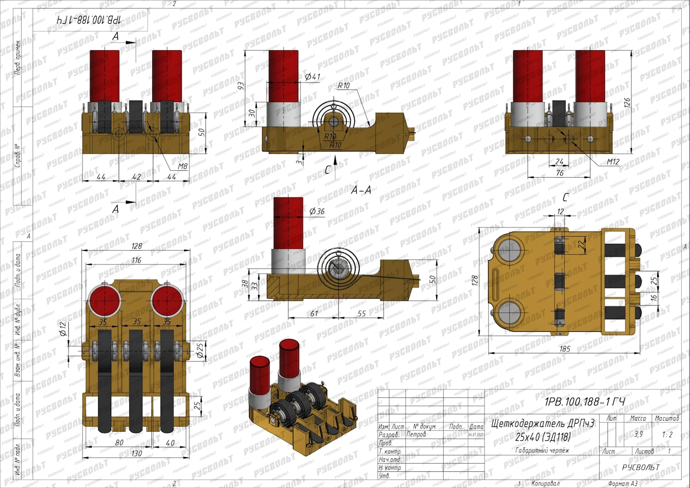 Щеткодержатель ДРПч3 25х40 (ЭД118) - чертеж 1РВ.100.188 ГЧ