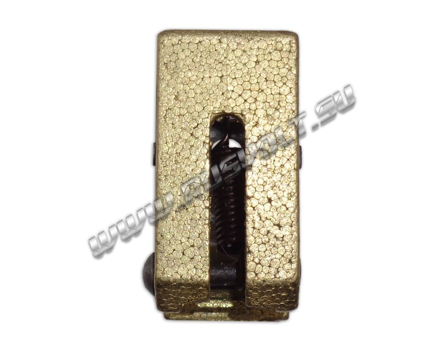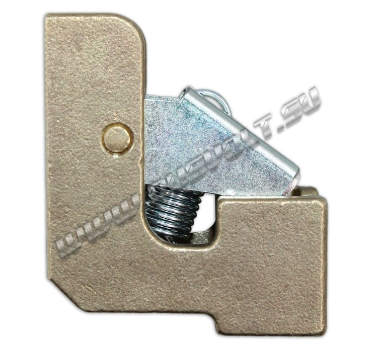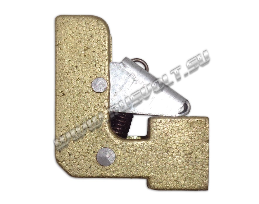 Щёткодержатель типа ДГП (ДПГ) 10х16 со специальной нажимной цилиндрической пружиной растяжения, радиальный, с разъемом для одной щётки размером 10х16х25мм. Давление пружины на графитовую щётку передаётся с помощью рычага и не регулируется. Щеткодержатель крепится на круглый палец (бракет) со стороны обоймы. Изготавливается под давлением из латуни с помощью фрезерной обработки путем протяжки, сверления и запиловки.