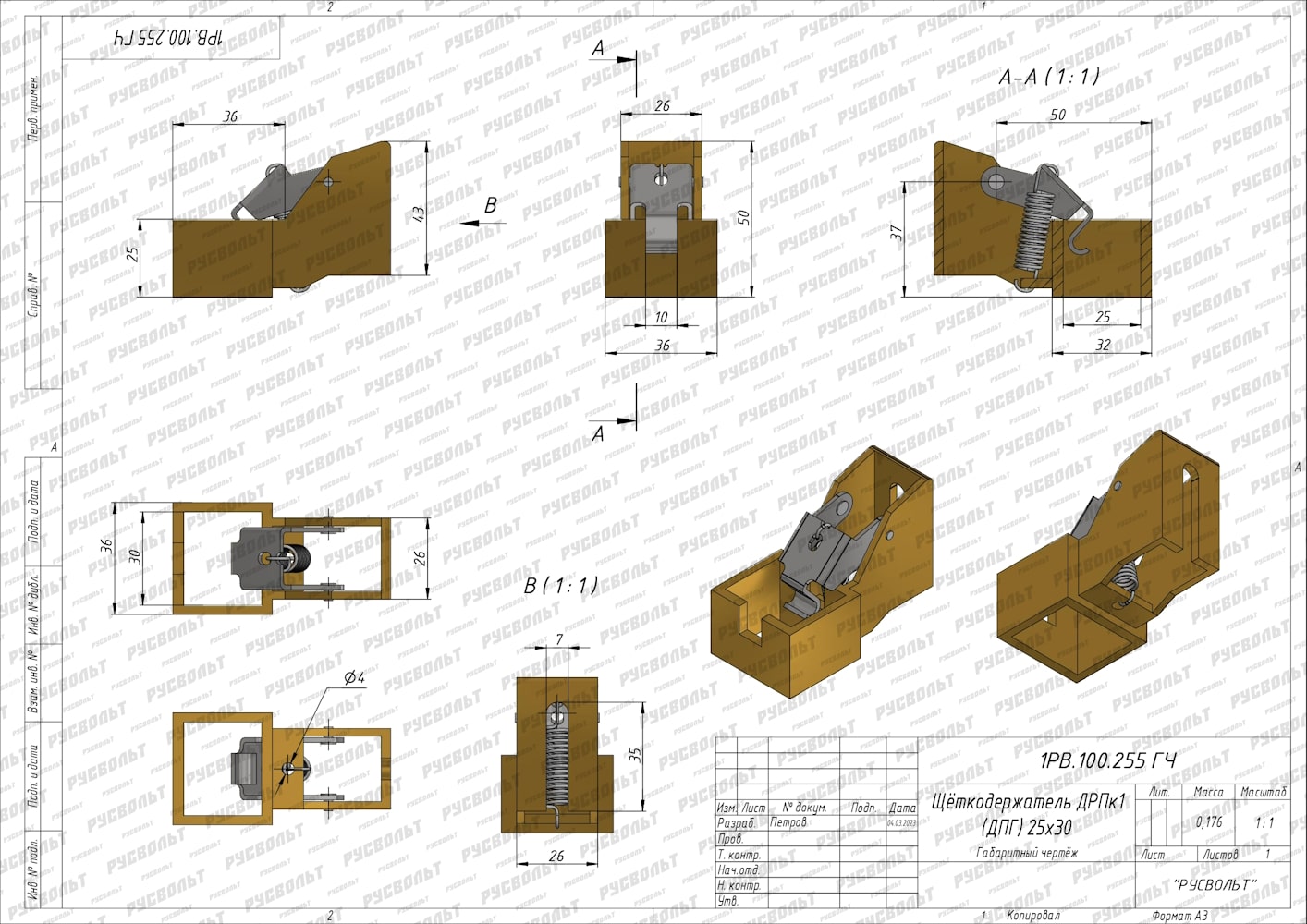 Щеткодержатель ДРПк1 (ДГП, ДПГ) 25х30 - чертеж 1РВ.100.255 ГЧ