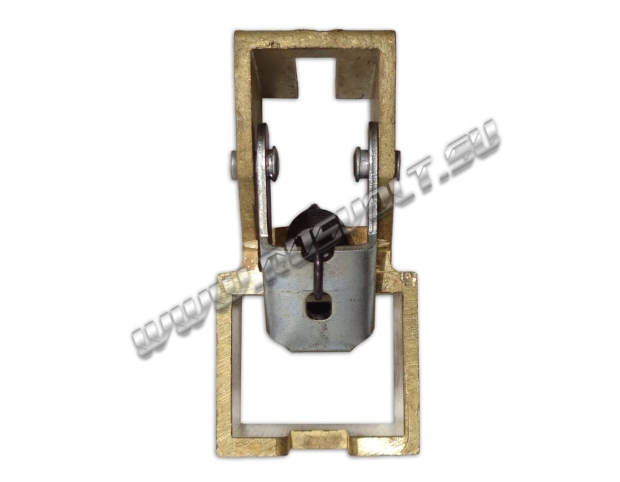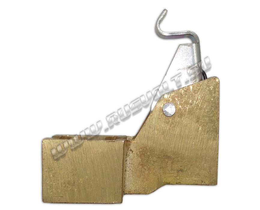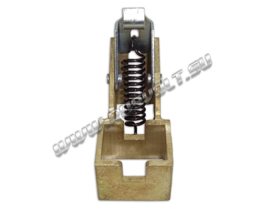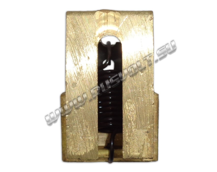 Щёткодержатель типа ДГП (ДПГ) 25х30 со специальной нажимной цилиндрической пружиной растяжения, радиальный, с разъемом для одной щётки размером 25х30х40мм. Давление пружины на графитовую щётку передаётся с помощью рычага и не регулируется. Щеткодержатель крепится на круглый палец (бракет) со стороны обоймы. Изготавливается под давлением из латуни с помощью фрезерной обработки путем протяжки, сверления и запиловки.