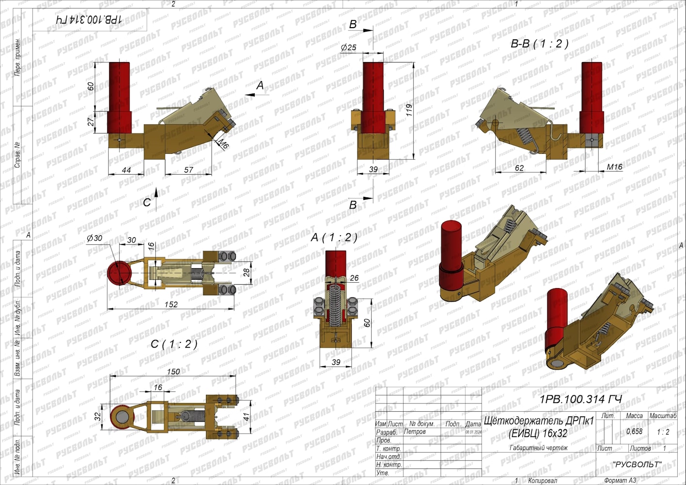 Щеткодержатель ДРПк1 (ЕИВЦ) 16х32 - чертеж 1РВ.100.314 ГЧ