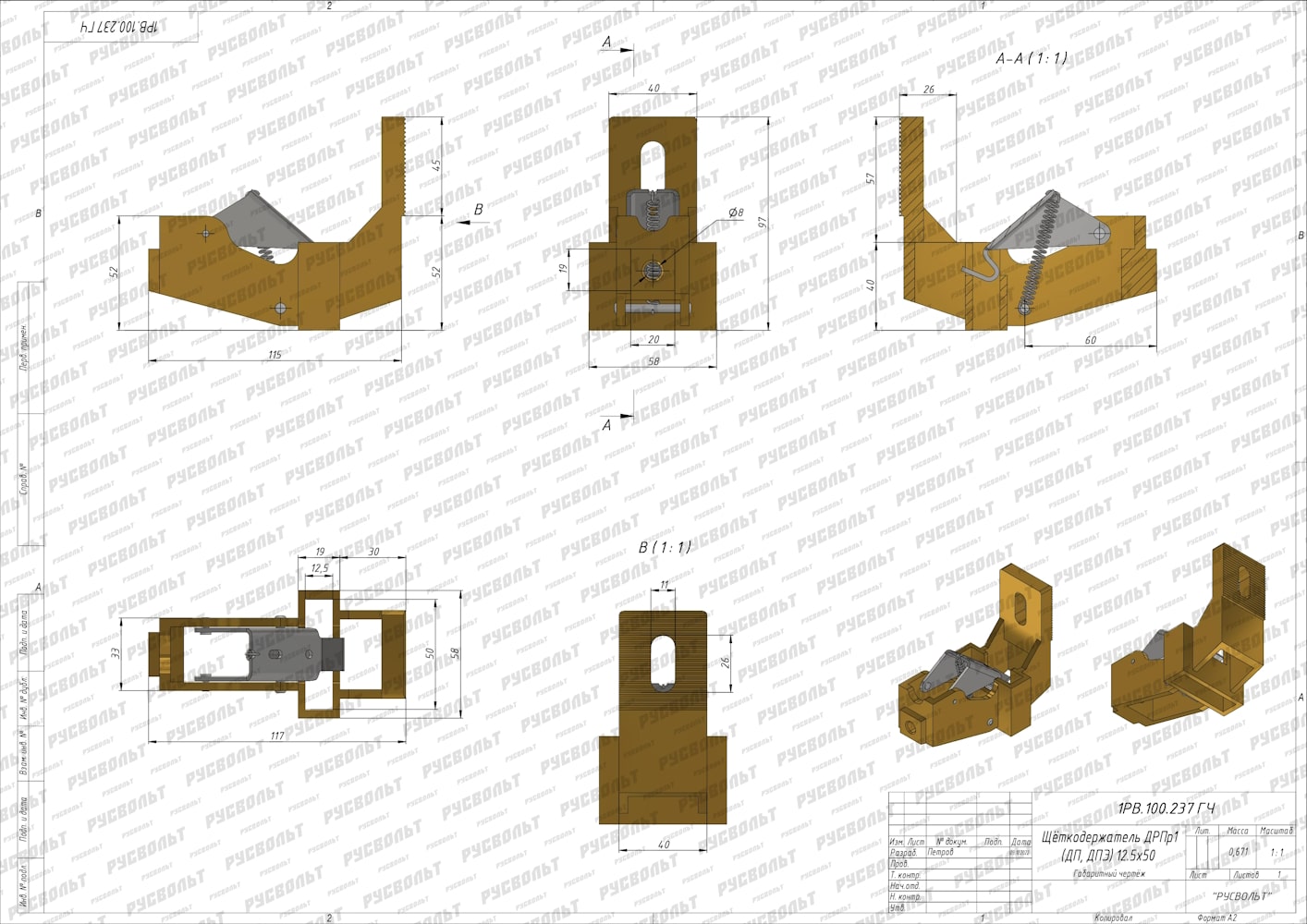 Щеткодержатель ДРПр1 (ДП, ДПЭ) 12,5х50 - чертеж 1РВ.100.237 ГЧ