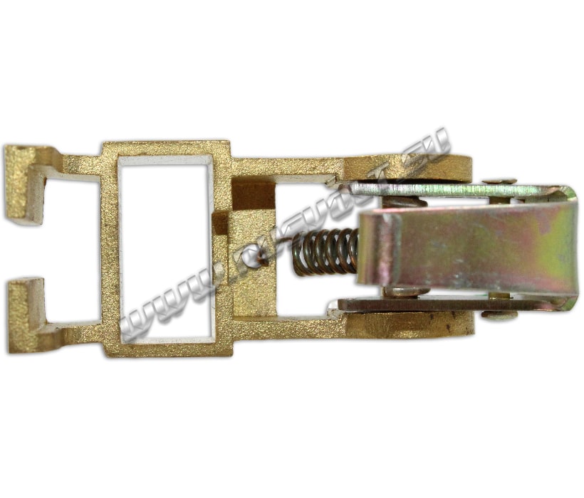 Щёткодержатель типа ДП (ДПМ) 12,5х25 со специальной нажимной цилиндрической пружиной растяжения, радиальный, с разъемом для одной щётки размером 12,5х25х40мм. Давление пружины на графитовую щётку передаётся с помощью рычага и не регулируется. Щеткодержатель крепится на круглый палец (бракет) со стороны обоймы. Изготавливается под давлением из латуни с помощью фрезерной обработки путем протяжки, сверления и запиловки.