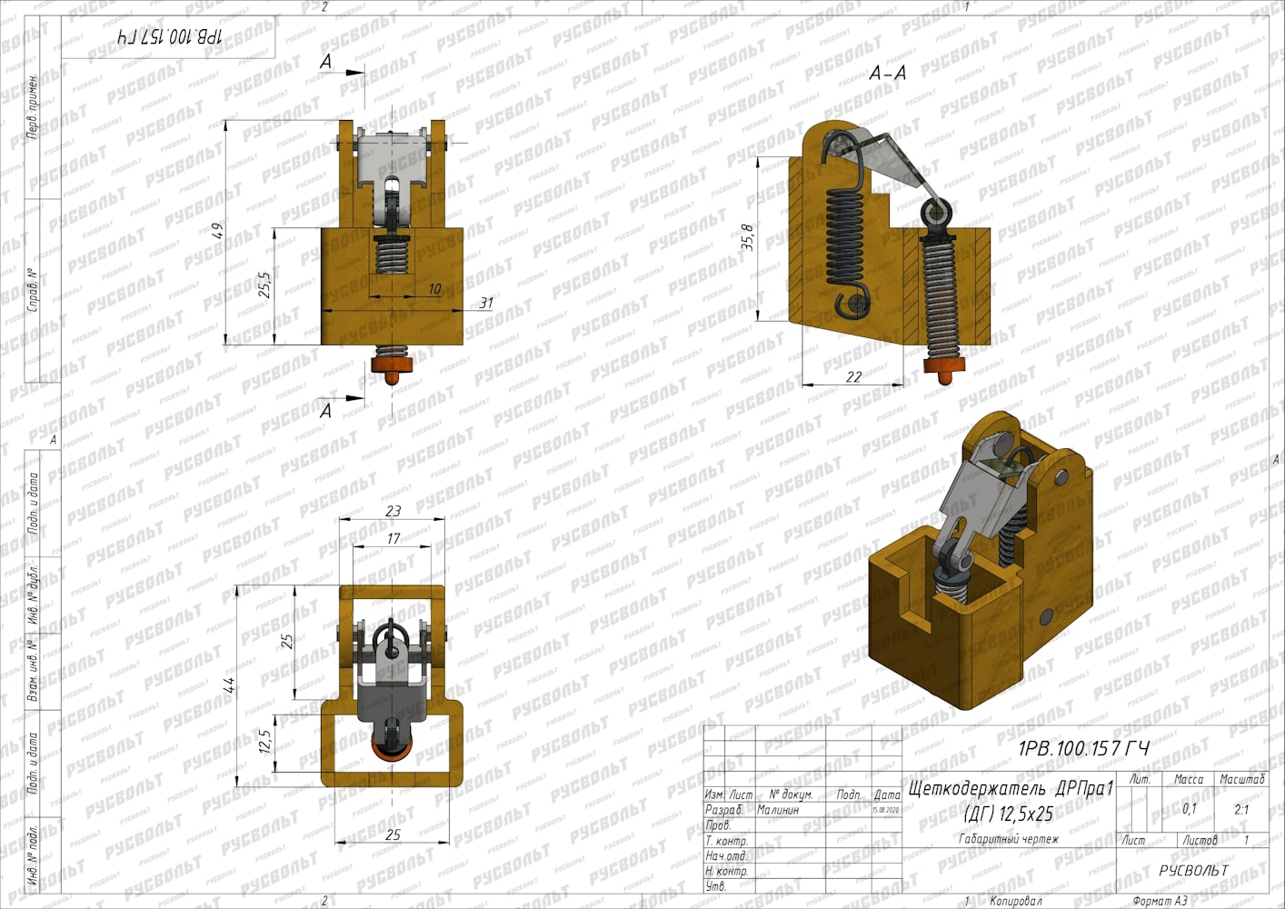 Возможные обозначения и чертежи щеткодержателя типа ДРПра1 12,5х25 могут выглядеть следующим образом: