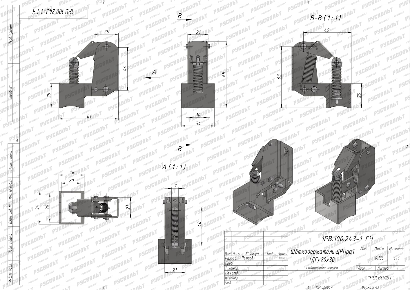 Щеткодержатель ДРПра1 (ДГ) 20х30 - чертеж 1РВ.100.243-1 ГЧ