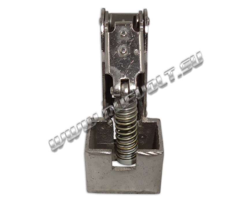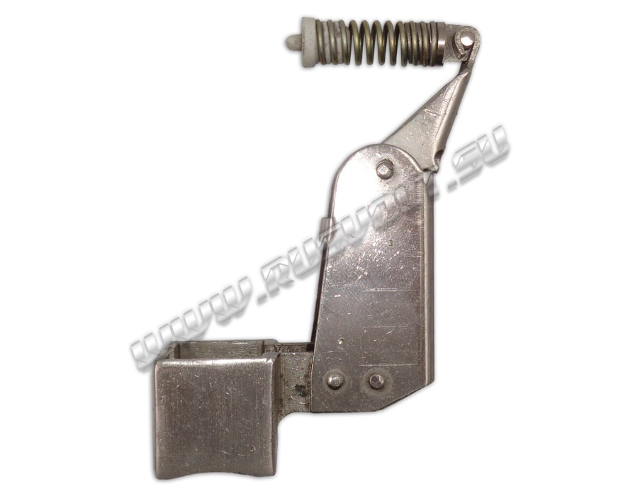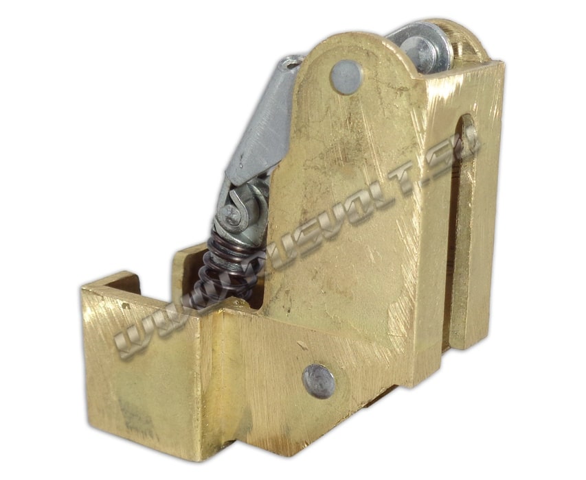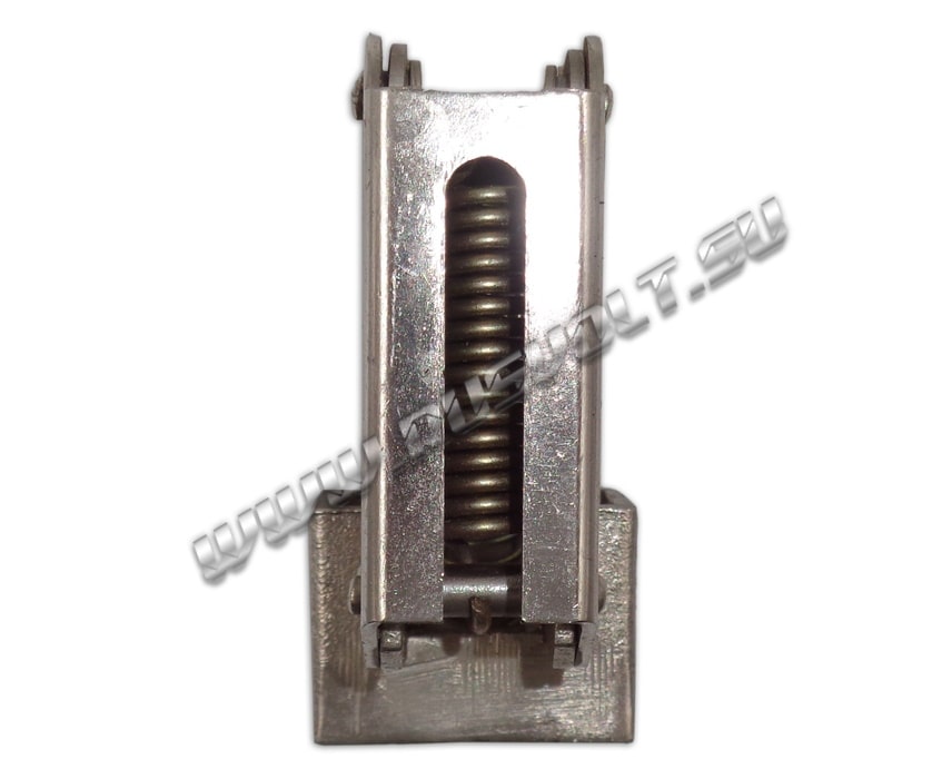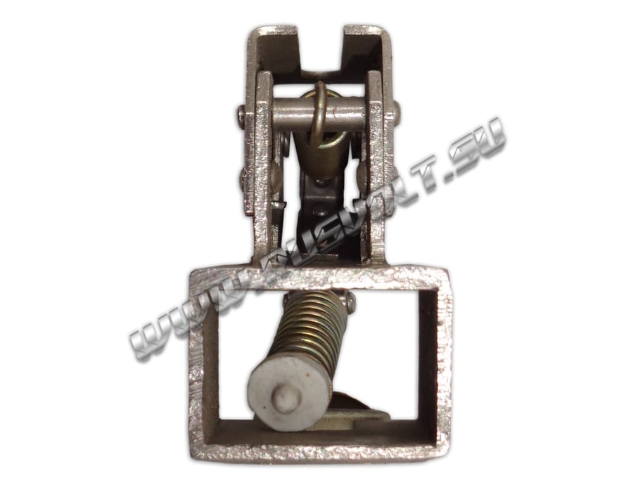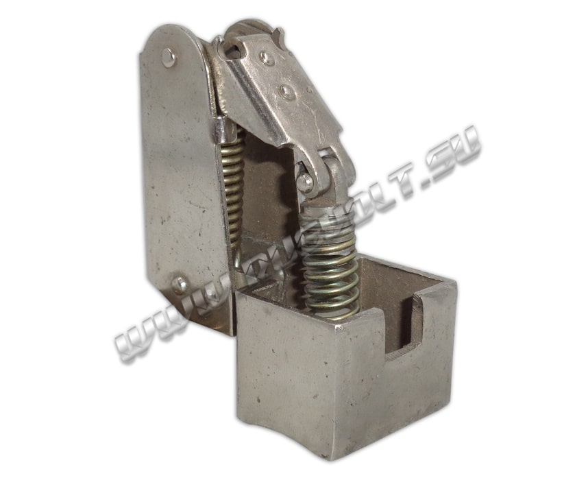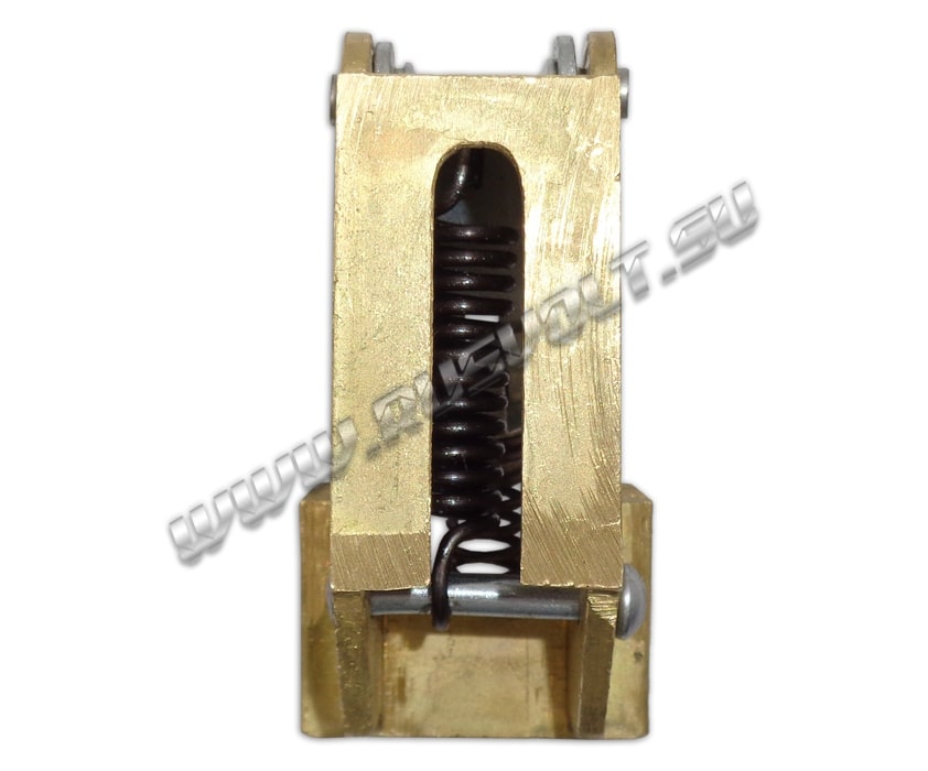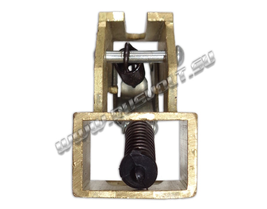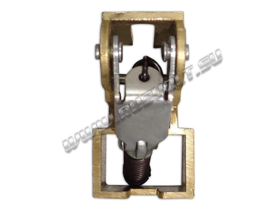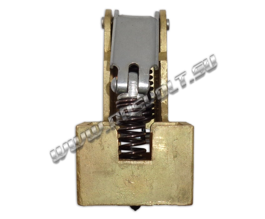 Щёткодержатель типа ДГ 20х30 со специальной нажимной цилиндрической пружиной растяжения, радиальный, с разъемом для одной щётки размером 20х30х40мм. Давление пружины на графитовую щётку передаётся с помощью рычага и не регулируется. Щеткодержатель крепится на круглый палец (бракет) со стороны обоймы. Изготавливается под давлением из латуни с помощью фрезерной обработки путем протяжки, сверления и запиловки.