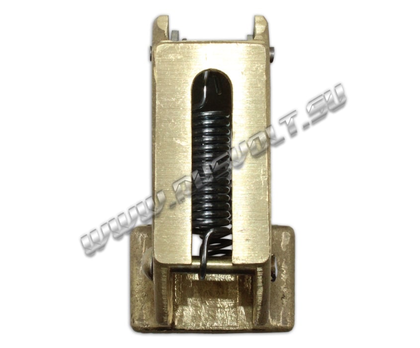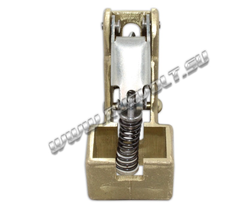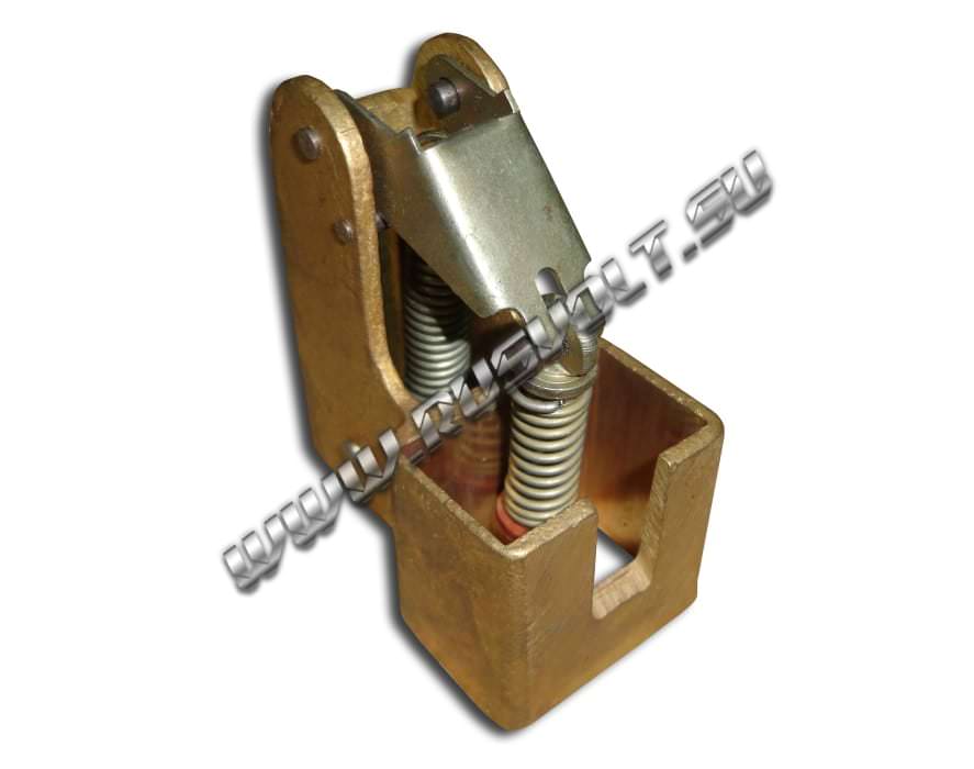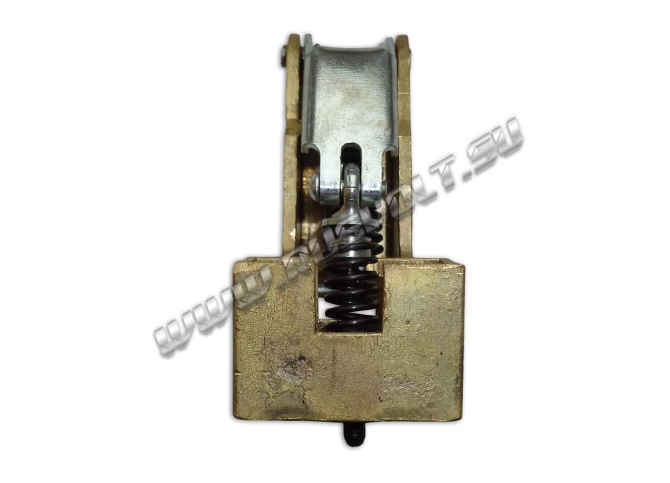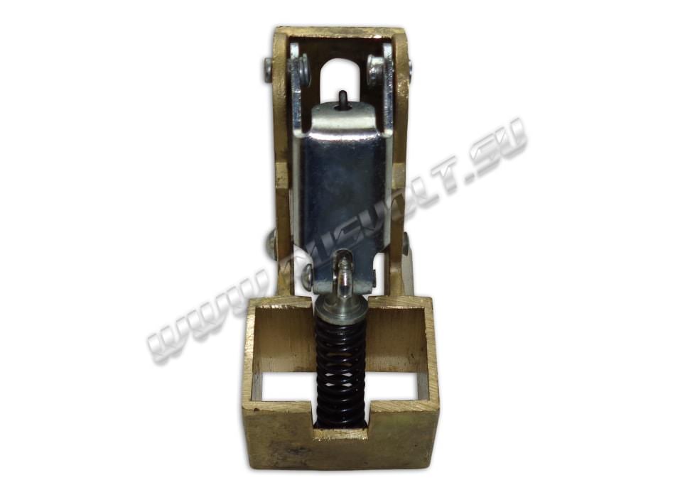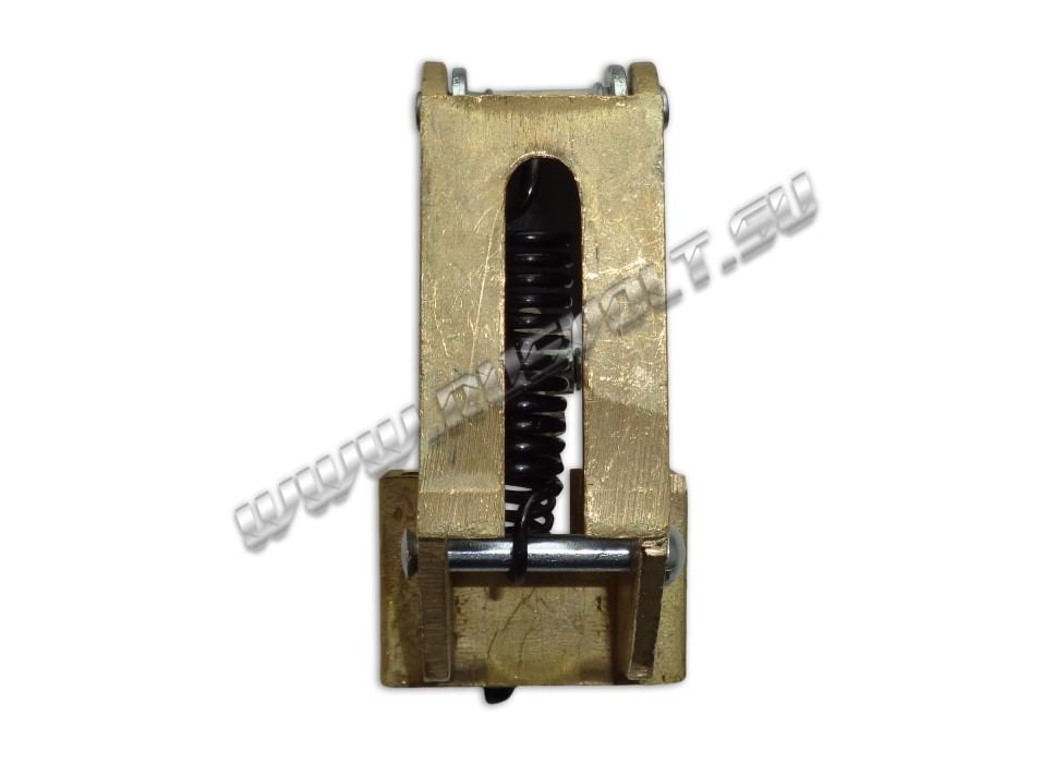 Щёткодержатель типа ДГ 20х32 со специальной нажимной цилиндрической пружиной растяжения, радиальный, с разъемом для одной щётки размером 20х32х50мм или 20х32х40мм в зависимости от типа щеткодержателя (тип 1 или тип 2). Давление пружины на графитовую щётку передаётся с помощью рычага и не регулируется. Щеткодержатель крепится на круглый палец (бракет) со стороны обоймы. Изготавливается под давлением из латуни с помощью фрезерной обработки путем протяжки, сверления и запиловки.