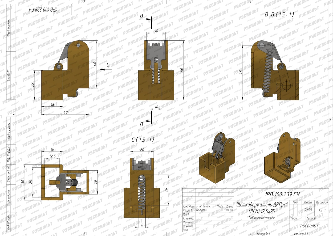 Возможные обозначения и чертежи щеткодержателя типа ДРПрс1 12,5х25 могут выглядеть следующим образом: