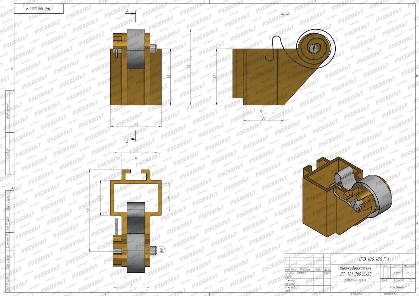 Щеткодержатель ДТ 701-706 16*25 - чертеж 1РВ.100.186 ГЧ