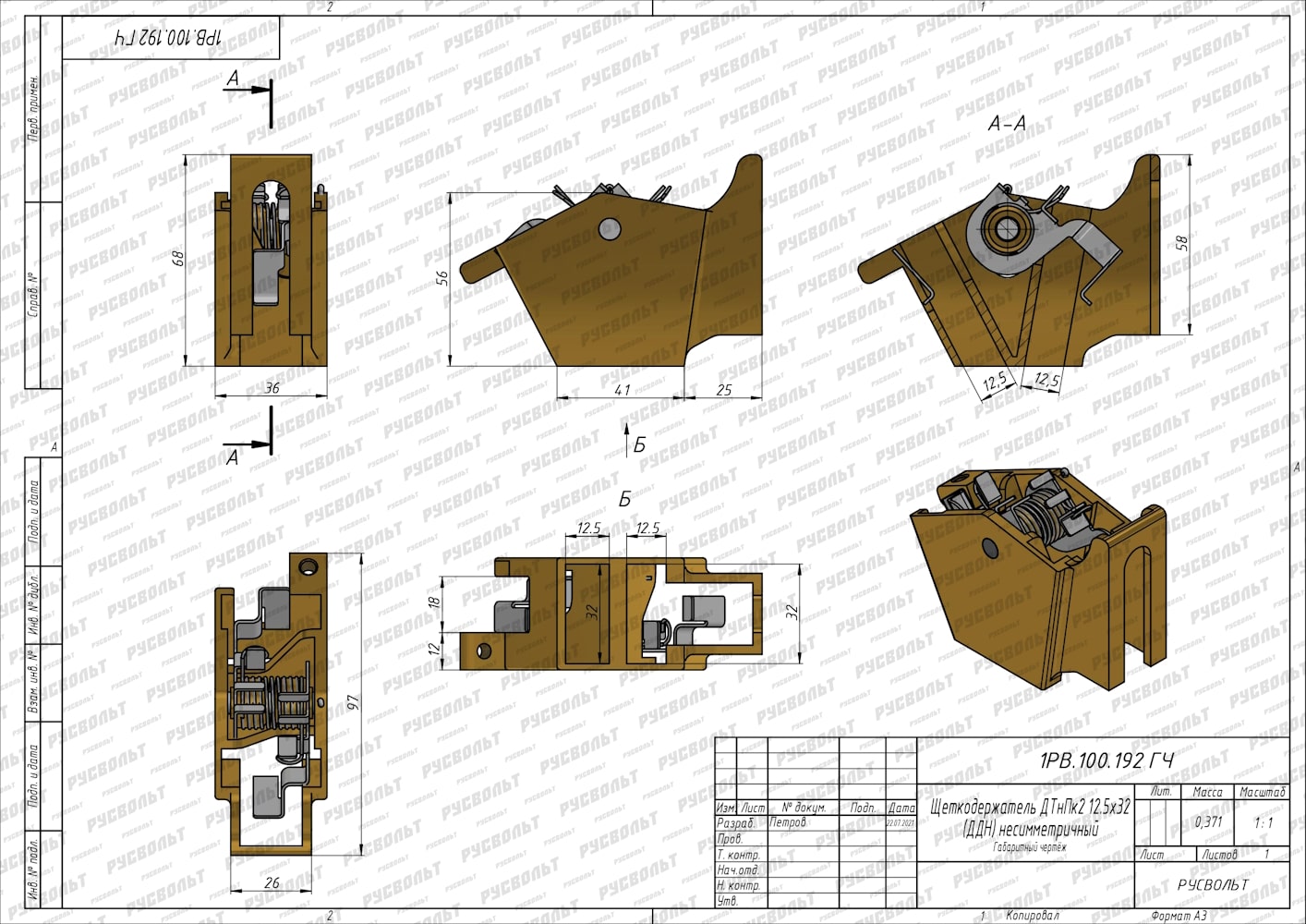 Щеткодержатель ДТнПк2 12,5х32 (ДДН) несимметричный - чертеж 1РВ.100.192 ГЧ