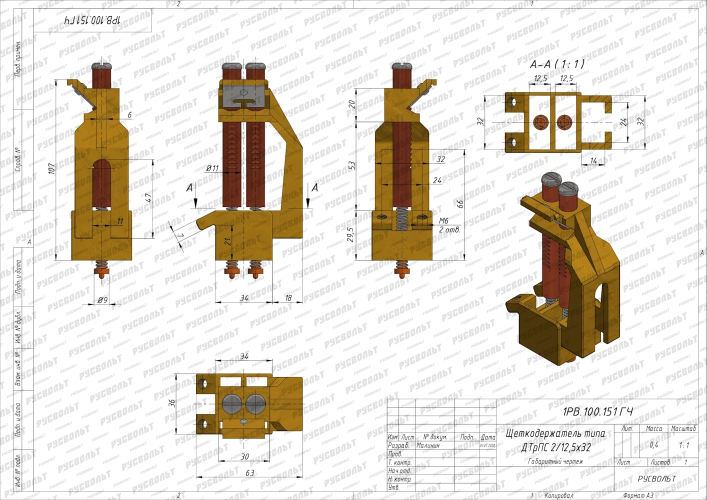 Щеткодержатель ДТрПс 2/12,5*32 - чертеж 1РВ.100.151 ГЧ