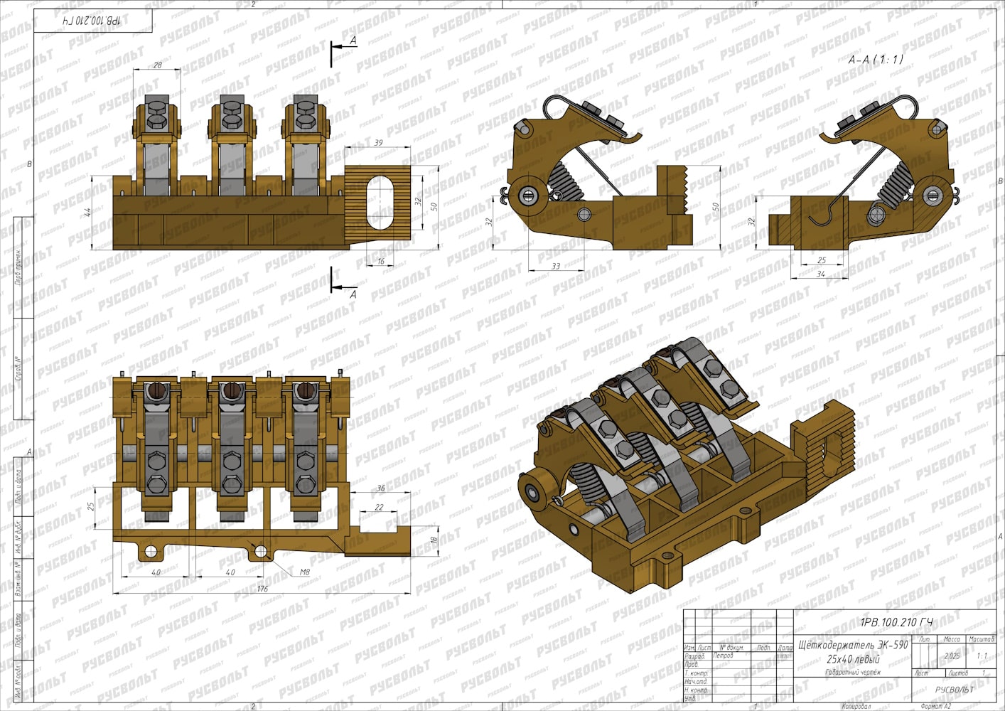 Щеткодержатель ЭК-590 25х40 (левый) - чертеж 1РВ.100.210-2 ГЧ