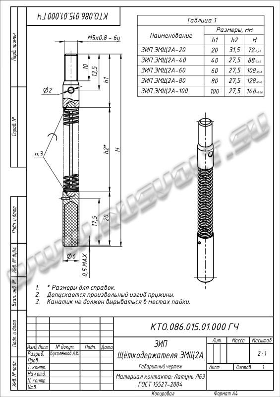 | Чертеж | Марка щеткодержателя | Н, (мм) | h1, (мм) | h2, (мм) | Резьба | Чертеж | Марка ЗИП | Н, (мм) | h1, (мм) | h2, (мм) |