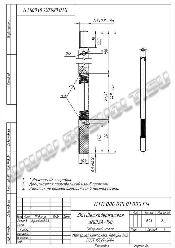 *В связи с тем что щеткодержатели ЭМЩ-2А-100 с металлической резьбой производит несколько различных предприятий, их размеры могут незначительно отличаться.