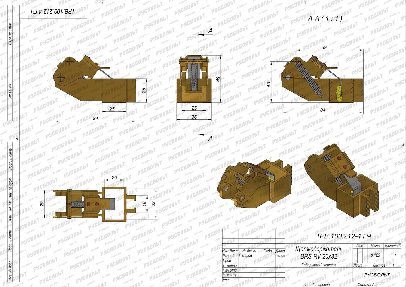 Щеткодержатель BRS-RV 20х32 (аналог Schunk, Mersen, Carbone Lorraine, Siemens, Pantrac, Lampar, Rekofa) - чертеж 1РВ.100.212-4 ГЧ