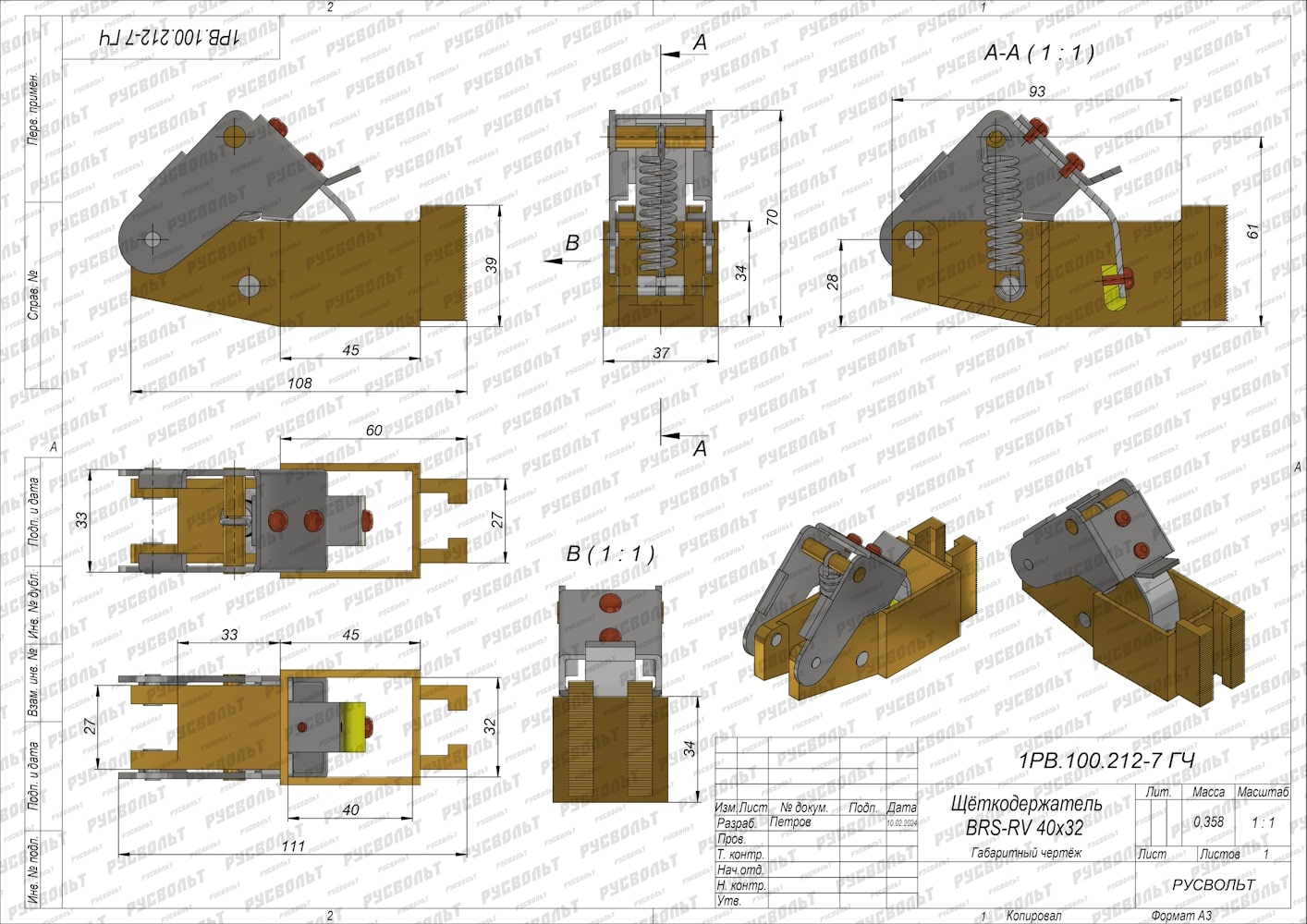 Щеткодержатель BRS-RV 40x32 (аналог Schunk, Mersen, Carbone Lorraine, Siemens, Pantrac, Lampar, Rekofa) - чертеж 1РВ.100.212-7 ГЧ