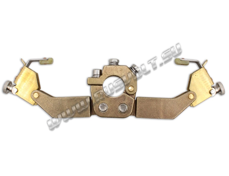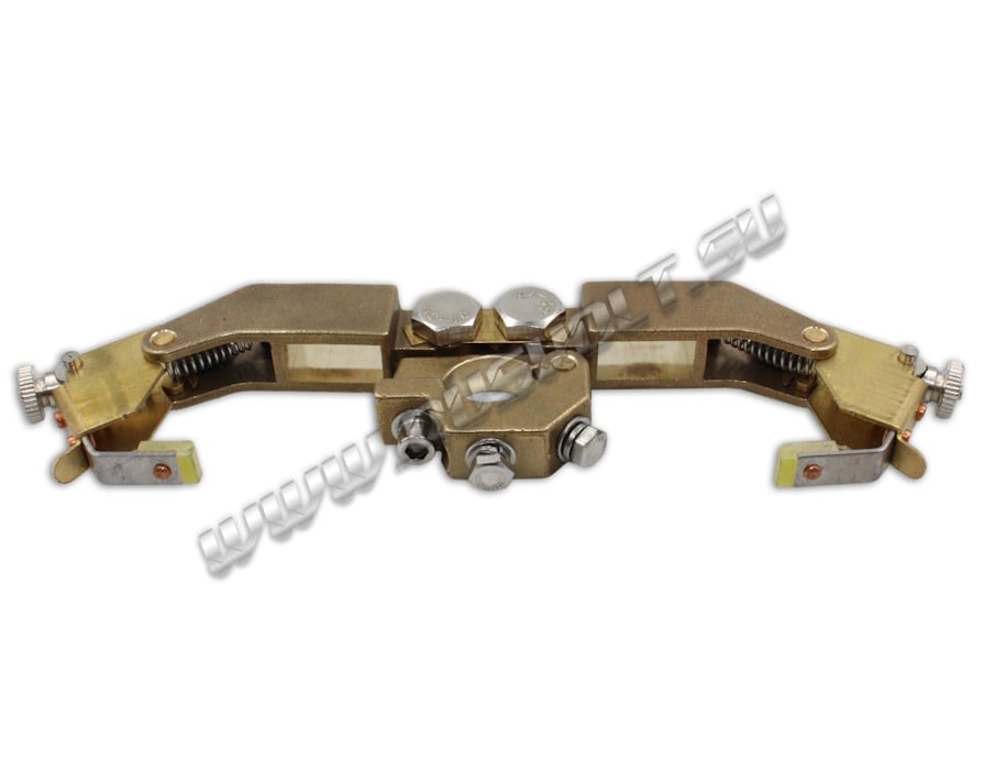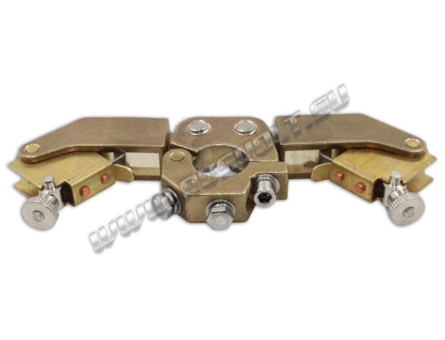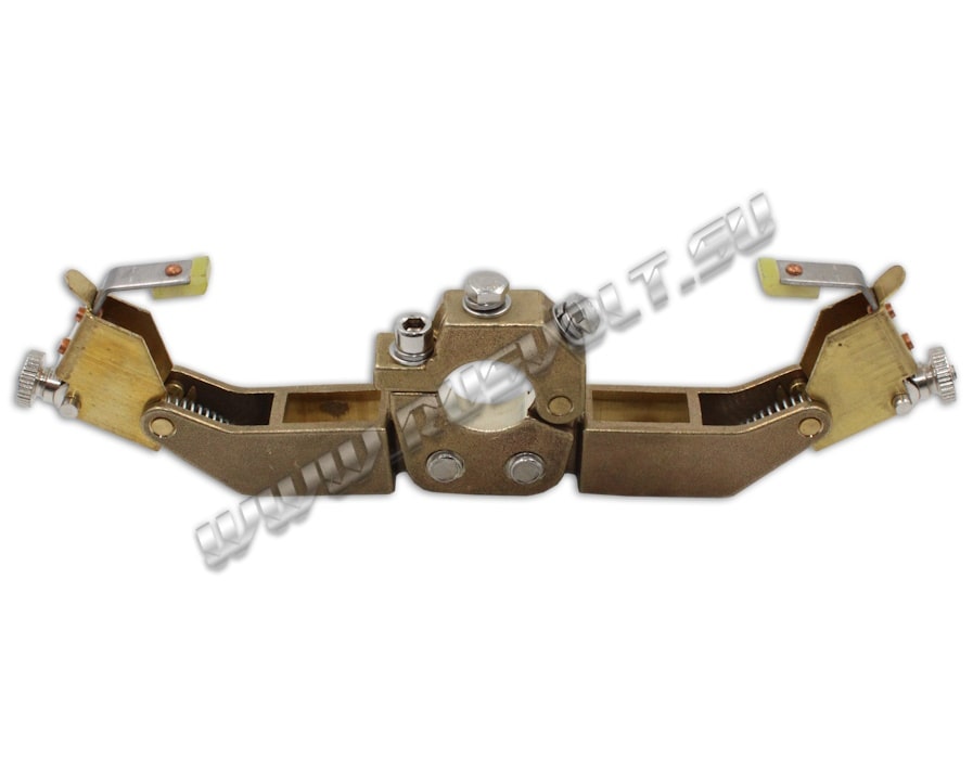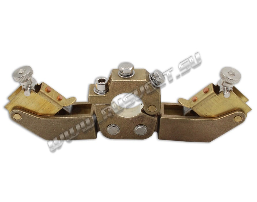 Щёткодержатели DRDF-RV 2/10х20 (возможный аналог DAKD 2010 10х20 Mersen (Carbon Lorraine)) используются в электрических машинах на блоках контактных колец и входят в состав узлов токосъема. Сделан методом литья из латуни и состоит из двух обойм для электрощеток размером 10х20 мм, прижимных устройств из двух цилиндрических пружин растяжения и изолированными наконечниками рычагов. Усилие нажатия на графитовые щётки регулируется и передаётся при помощи пружин щеткодержателя и рычагов. Сам щеткодержатель крепится на круглый бракет (траверсу) и устанавливается на оси токосъемного кольца. Угол расположения обойм для электрощеток регулируется и фиксируется при помощи болтов.