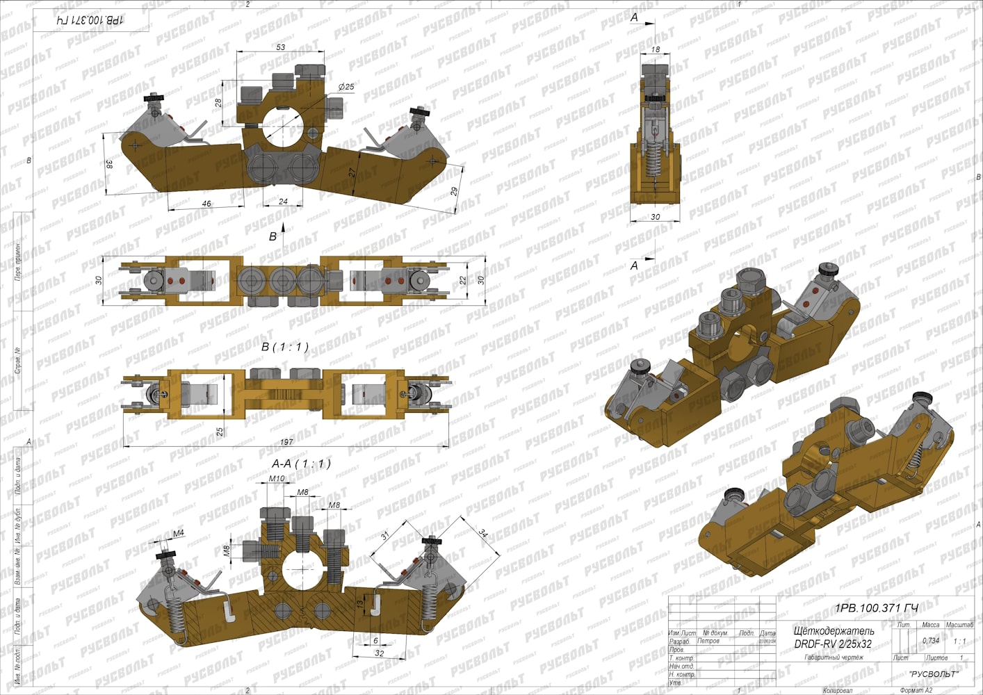 Щеткодержатель DRDF-RV 2/25х32 (аналог Schunk, Mersen, Carbone Lorraine, Siemens, Pantrac, Lampar, Rekofa) - чертеж 1РВ.100.371 ГЧ