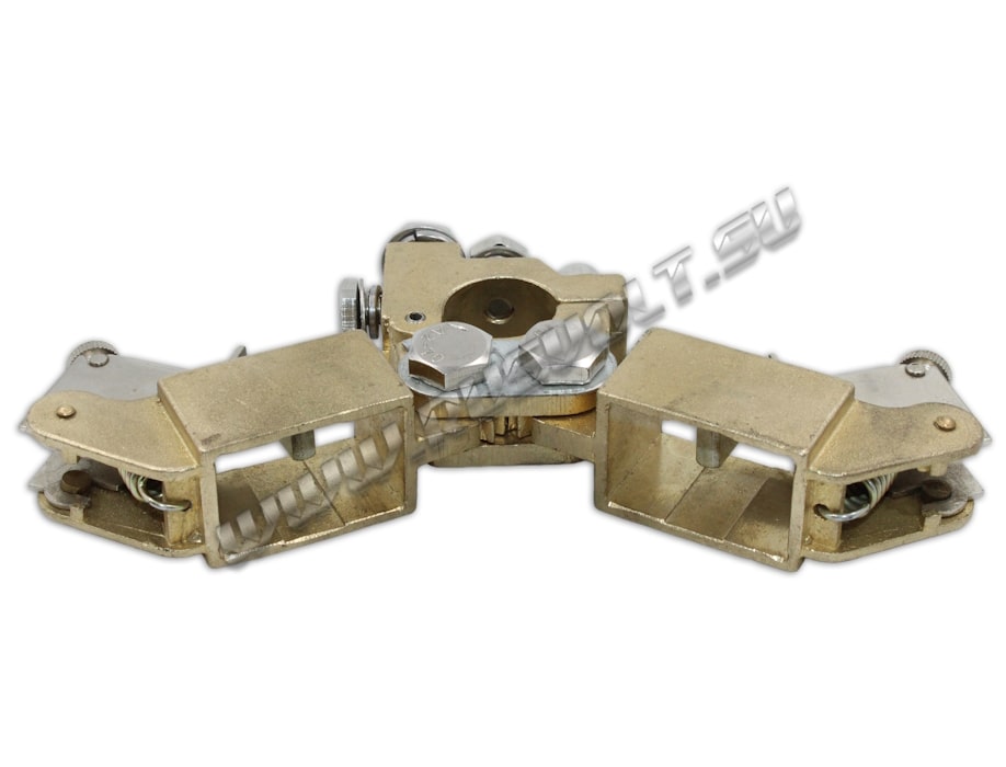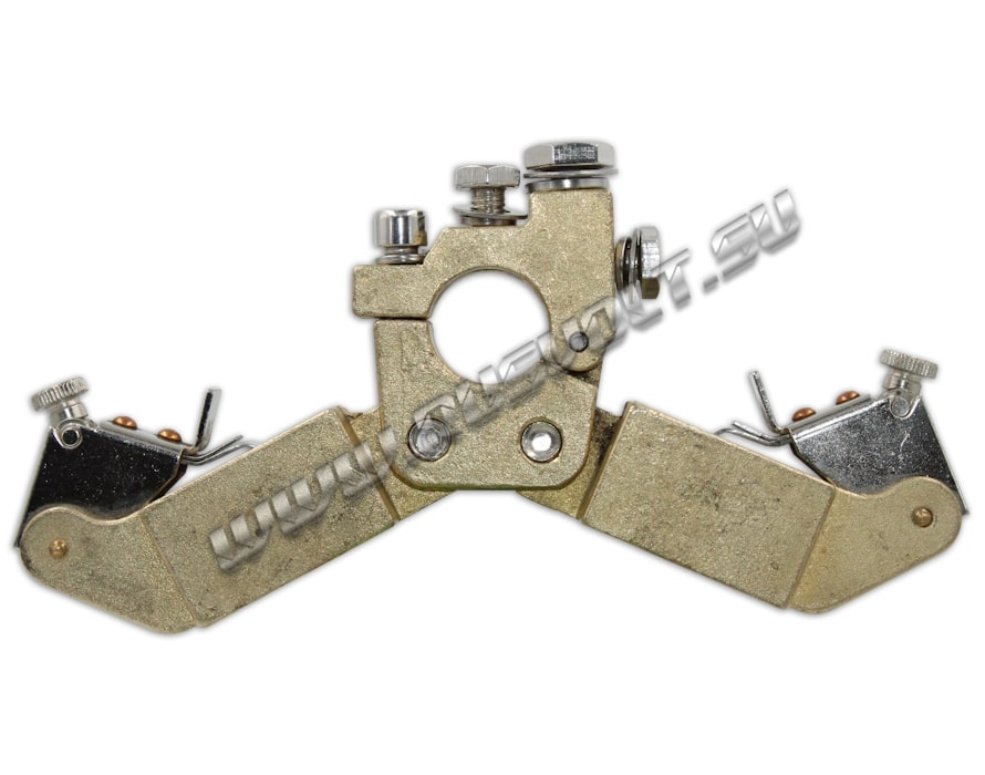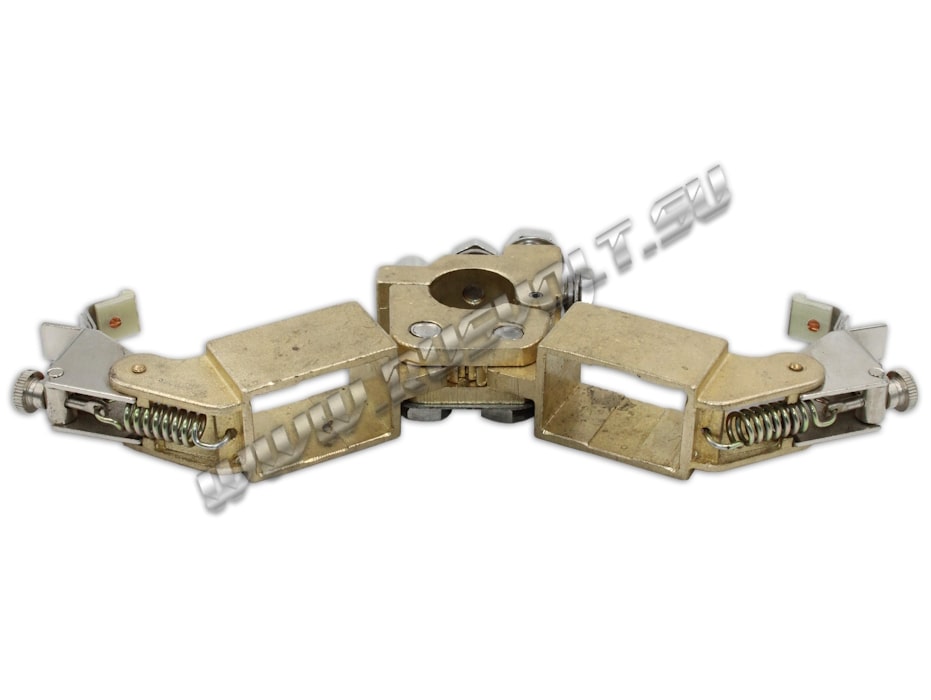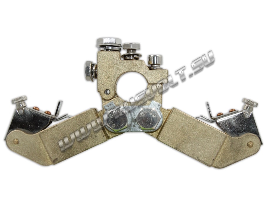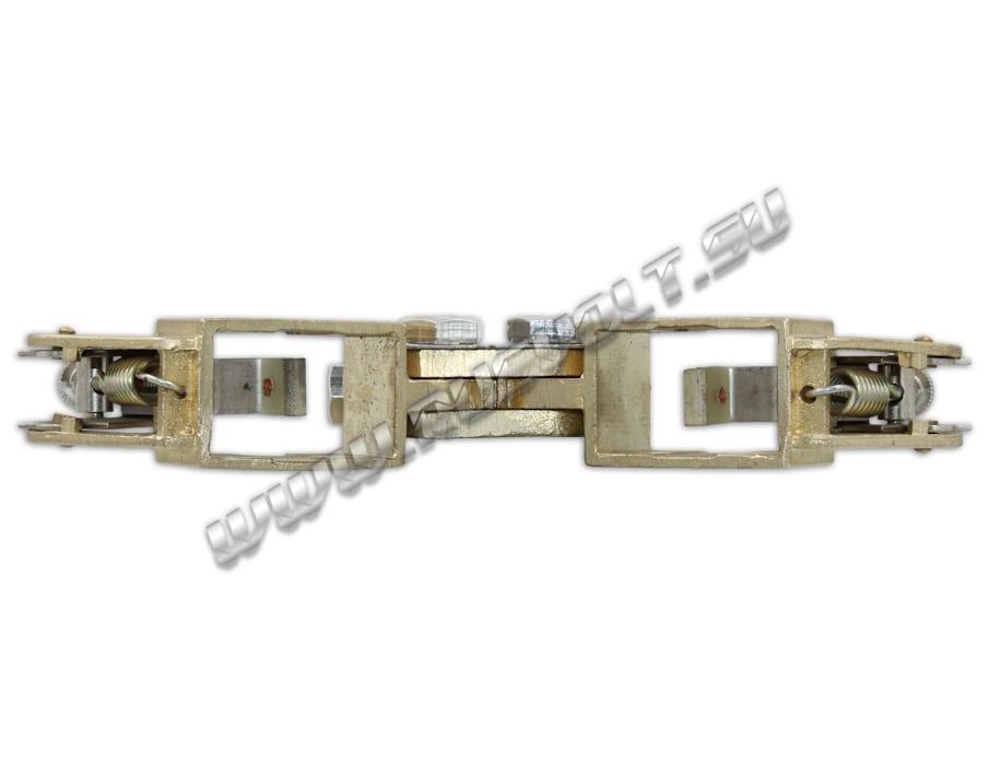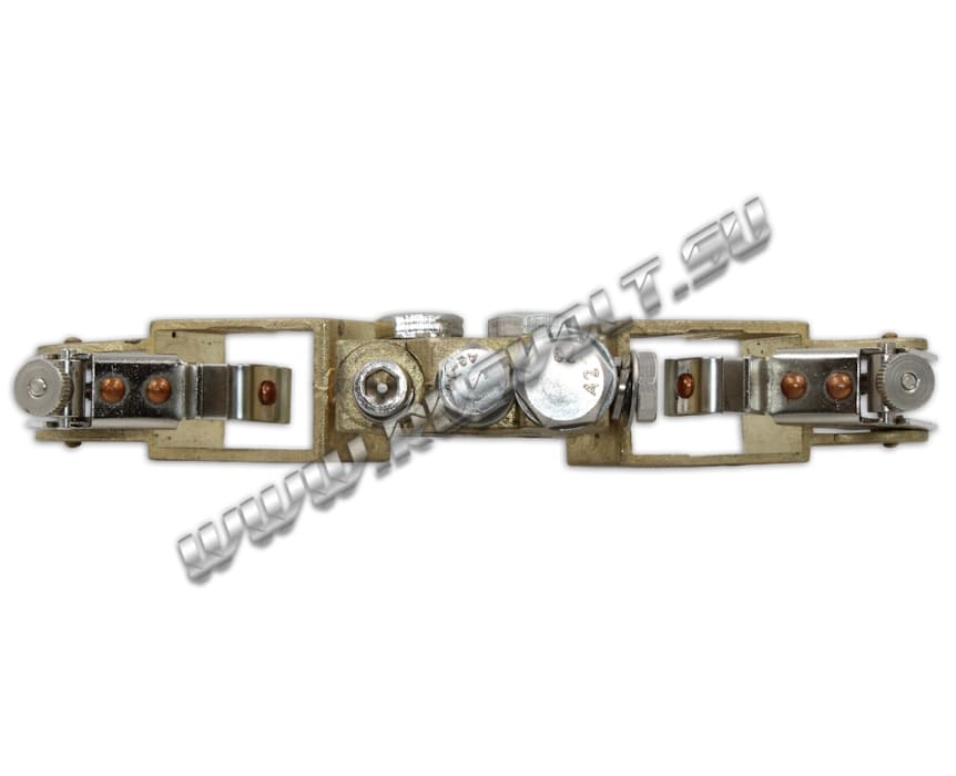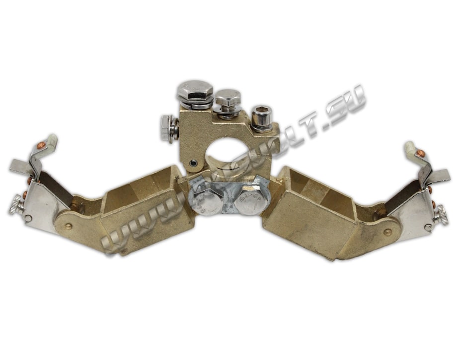 Щёткодержатели DRDF-RV 2/25х40 используются в электрических машинах на блоках контактных колец и входят в состав узлов токосъема. Сделан методом литья из латуни и состоит из двух обойм для электрощеток размером 25х40 мм, прижимных устройств из двух цилиндрических пружин растяжения и изолированными наконечниками рычагов. Усилие нажатия на графитовые щётки регулируется и передаётся при помощи пружин щеткодержателя и рычагов. Сам щеткодержатель крепится на круглый бракет (траверсу) и устанавливается на оси токосъемного кольца. Угол расположения обойм для электрощеток регулируется и фиксируется при помощи болтов.