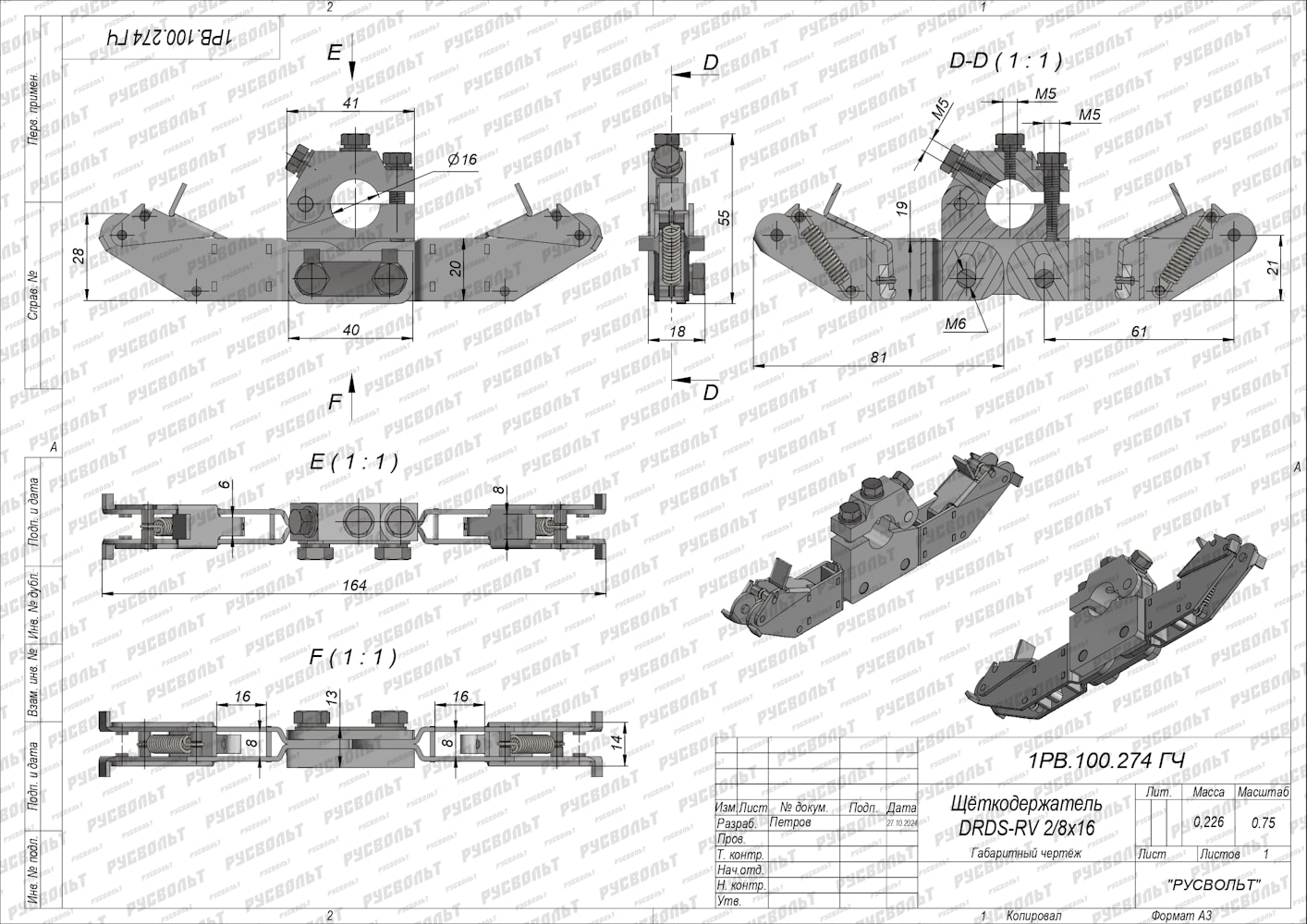Щеткодержатель DRDS-RV 2/8х16 - (аналог Schunk, Mersen, Carbone Lorraine, Siemens, Pantrac, Lampar, Rekofa) - чертеж 1РВ.100.274 ГЧ