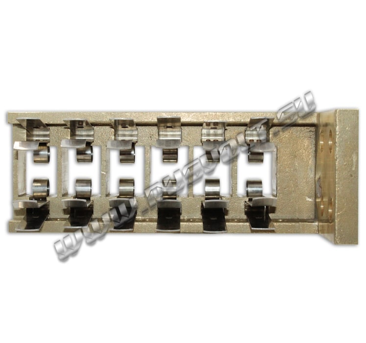 Щёткодержатель FRKD-RV 6/32x42 состоит из шести обойм и двенадцати нажимных устройств, обеспечивающих прилегание щеток к блоку контактных колец с необходимым усилием. Давление на одну графитовую щетку передаётся при помощи двух рулонных пружин. Сам щеткодержатель крепится на траверсу (бракет) и устанавливается на оси токосъемного кольца. Изготавливается под давлением из латуни с помощью фрезерной обработки путем протяжки, сверления и запиловки.