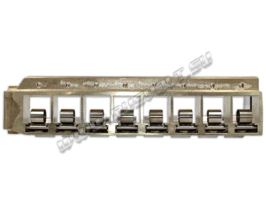 Щёткодержатель FRKL-RV 8/38x38 состоит из восьми обойм и восьми нажимных устройств, обеспечивающих прилегание щеток к блоку контактных колец с необходимым усилием. Давление на графитовую щетку передаётся при помощи восьми рулонных пружин щеткодержателя. Сам щеткодержатель крепится на траверсу (бракет) и устанавливается на оси токосъемного кольца. Изготавливается под давлением из латуни с помощью фрезерной обработки путем протяжки, сверления и запиловки.