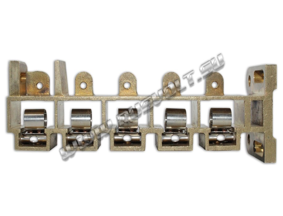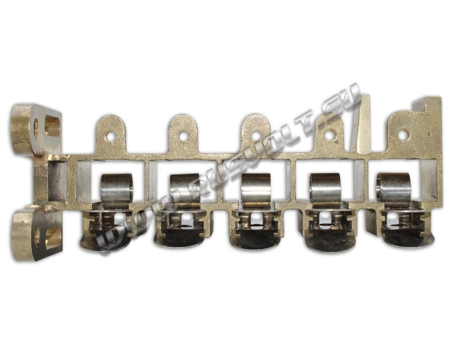 Щёткодержатель FRKT-RV 5/20х32 состоит из пяти обойм и пяти нажимных устройств, обеспечивающих прилегание щеток к блоку контактных колец с необходимым усилием. Давление на графитовую щетку передаётся при помощи пяти рулонных пружин щеткодержателя. Сам щеткодержатель крепится на траверсу (бракет) и устанавливается на оси токосъемного кольца. Изготавливается под давлением из латуни с помощью фрезерной обработки путем протяжки, сверления и запиловки.