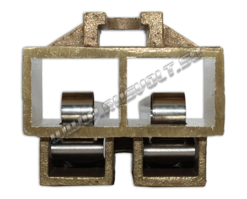 Щёткодержатель G-RV 2/25х32 состоит из двух обойм и двух нажимных устройств, обеспечивающих прилегание щеток к блоку контактных колец с необходимым усилием. Давление на графитовую щетку передаётся при помощи двух рулонных пружин щеткодержателя. Сам щеткодержатель крепится на траверсу (бракет) и устанавливается на оси токосъемного кольца. Изготавливается под давлением из латуни с помощью фрезерной обработки путем протяжки, сверления и запиловки.